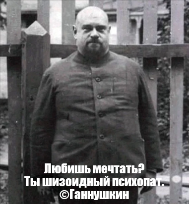 >>1897499 > есть частники ебать Так они чем лучше? Вот скидывали частника за 35к, полюбуйся >>1896108 → А диагнозы рл это дело условное вообще. Вот прочитал я книжку по психоаналитической диагностики, сравнил с собой, нашёл что-то похожее. Чувствую ли я себя так? Да. Называть можете как хотите, шизоидным, хуеидным, хиканнским, хуянским. Ну скажут лет через 5 "а, нет, на самом деле шизоид это вот это, а не то, что говорили раньше, а то вообще не расстройство и вообще его нет", ну пожалуйста, просто конкретно эти критерии ко мне относятся, семи пядий во лбу быть не надо. > это нужно пиздец нарциком быть с синдромом Бога, чтобы себе поставить диагноз ебать Представим, что у нас есть условное обозначение Чикибряк - человек с серыми глазами, носящий зелёные штаны, красную кожанную куртку, имеющий привычку крутить ключи на пальце и напевать песни киша при любом удобном случае. Дохуя нарциком надо быть, чтобы понять, что все эти критерии к тебе относятся, если ты носишь зелёные штаны, красную куртку, имеешь серый цвет глаз, поешь песни киша и крутишь ключи на пальце? Вот прям только спец за много денег со стороны должен подтвердить, чтобы ты мог осознать себя чикибряком? Они же только тогда к тебе начнут относиться? Или же они могут относиться, но называться чикибряком ты можешь только с разрешения специалиста? Как в анекдоте: жопа есть, а слова нет.