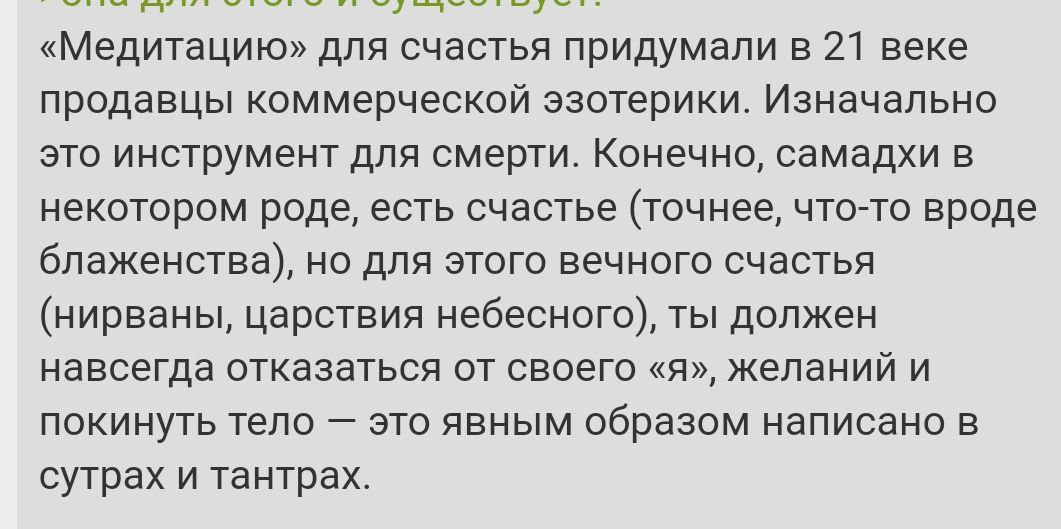 > Мне больше импонирует учение Будды. Ну говорят тебе гадость, а ты стремить к тому чтобы тебе было просто похуй. Пикр. Ты описываешь не буддизм, а "христианство" (в редакции Павла). Это ведёт именно к той ситуации, когда в тебя плюют, тебя при все поддевают, а ты молчишь и терпишь. Метафизически это может и согласовано, но практически это ослабляет, вредмт.