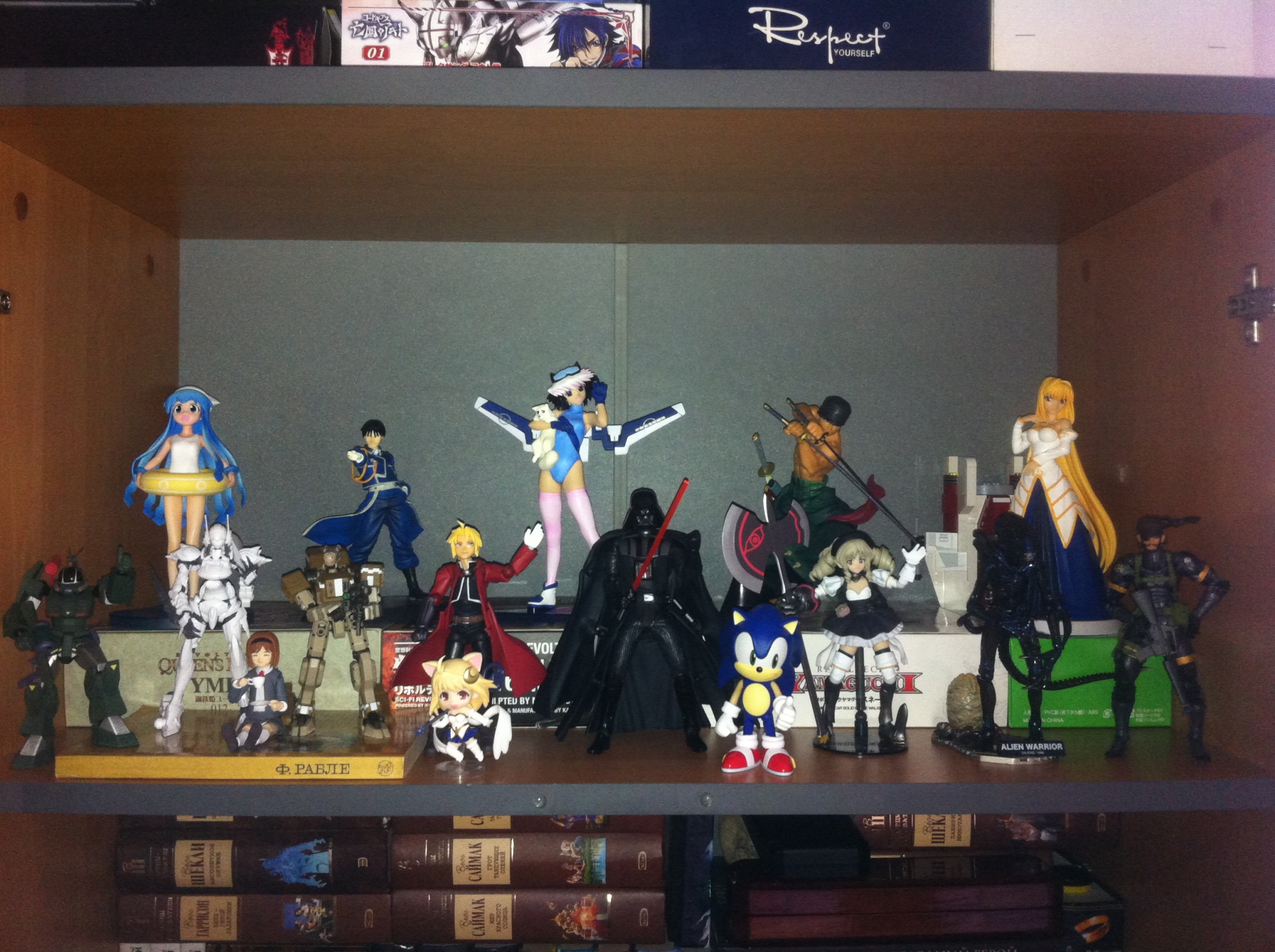 М 2. 32 3/4. Когда был мелким, дед возил чибиков Ганадмов, штук 30 было. Но младший братик их разломал, осталось всего 5. Ну а так за стеклом радуют глаз: 30+ фигурок Акси, 10+ понравившихся мне аниме персонажей (пара в нескольких экземплярах), 1 фигурка с голыми сиськами (хз зачем я ее купил), 1 фигурка неко декочки из Shining Hearts, 3 девочки-волшебницы из BRS, 7 или 8 моделек из Armored Core и 1 PG Gundam. Не люблю фигурки с шарнирами и недройдов (так бы Аска была более многочисленна). 4. Переходящие, сейчас читаю Хайнлайна и пересматриваю Suits S01. 5. Да кому я тут нужен...