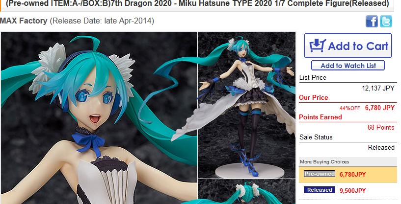 >>18373 http://ekizo.mandarake.co.jp/shop/en/item_s-830425.html Недавно была на Акихабаре за ~4.5 без учета доставки - посылка довольно крупная будет. Фигурки прошлых лет редко можно купить по бросовой цене, так что либо раскошеливайся, либо ищи б/у, либо жди ре-релиз, либо лепи сам.