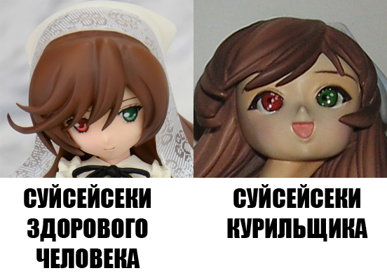 С другой стороны, вот такое выражение лица в стиле "overly attached girlfriend" есть только у бутлежной Мику из-за смещения декалей глаз при покраске, а оригинальная версия смотрит вбок.