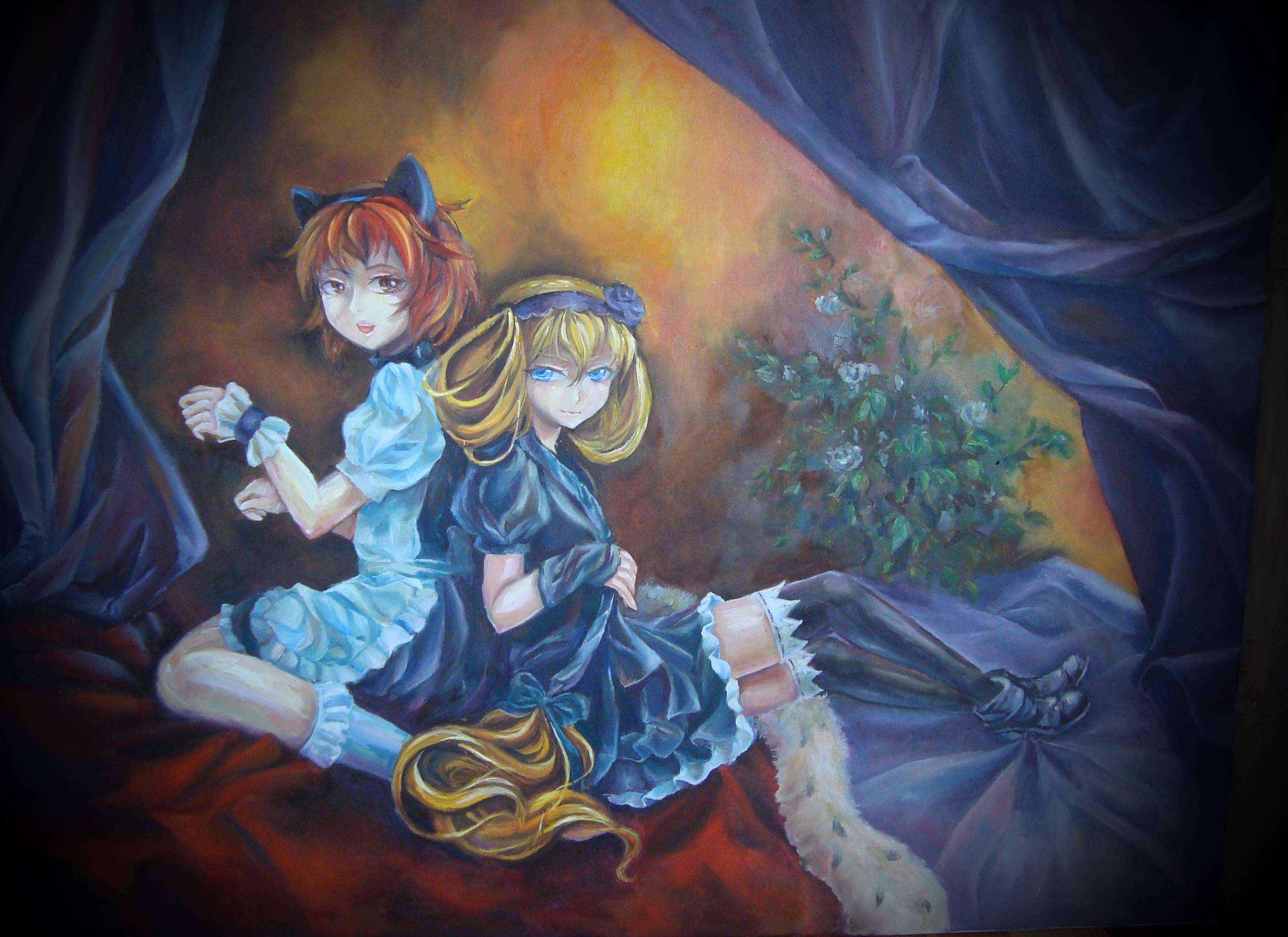 >>2173 Слишком ленив для масла, хотя хотел бы попробовать. Алсо оно дороже, например, акрила. пока что похож, я хотел сделать все темным, кроме бантиков >>2175 Спасибо.