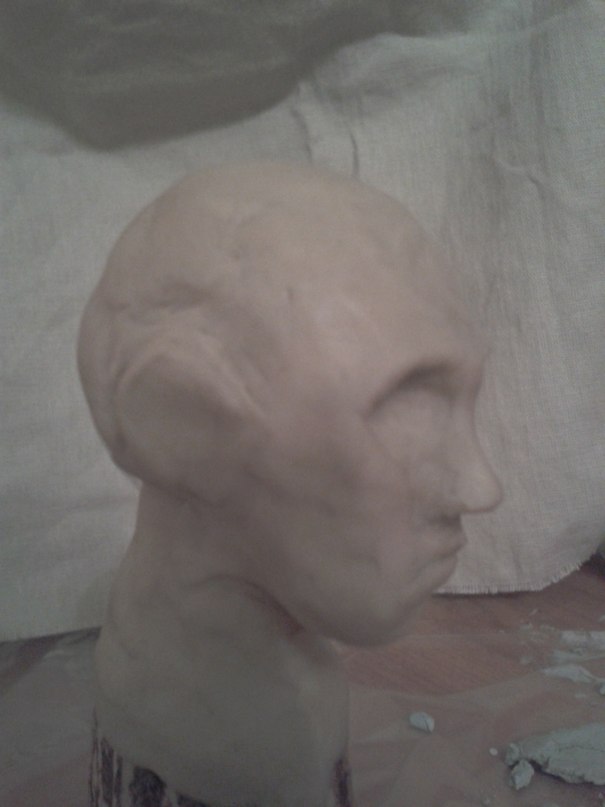 Уши получились, по моему мнению, почти идеально. Из за особенности прически, а именно плотному прилеганию ее тыльной части к голове, и по совету одного человека, волосы буду лепить сразу, может вместе с ушами.