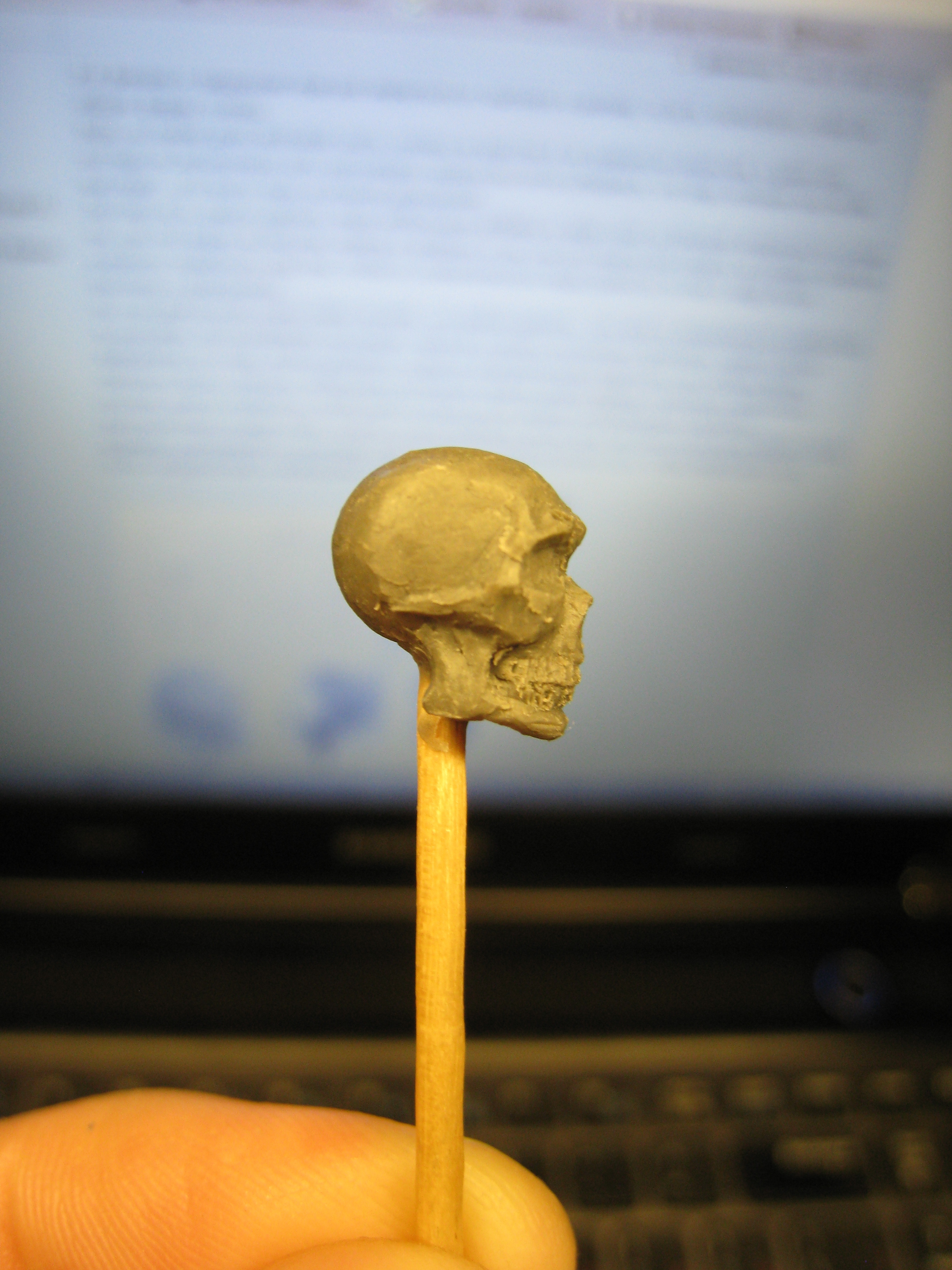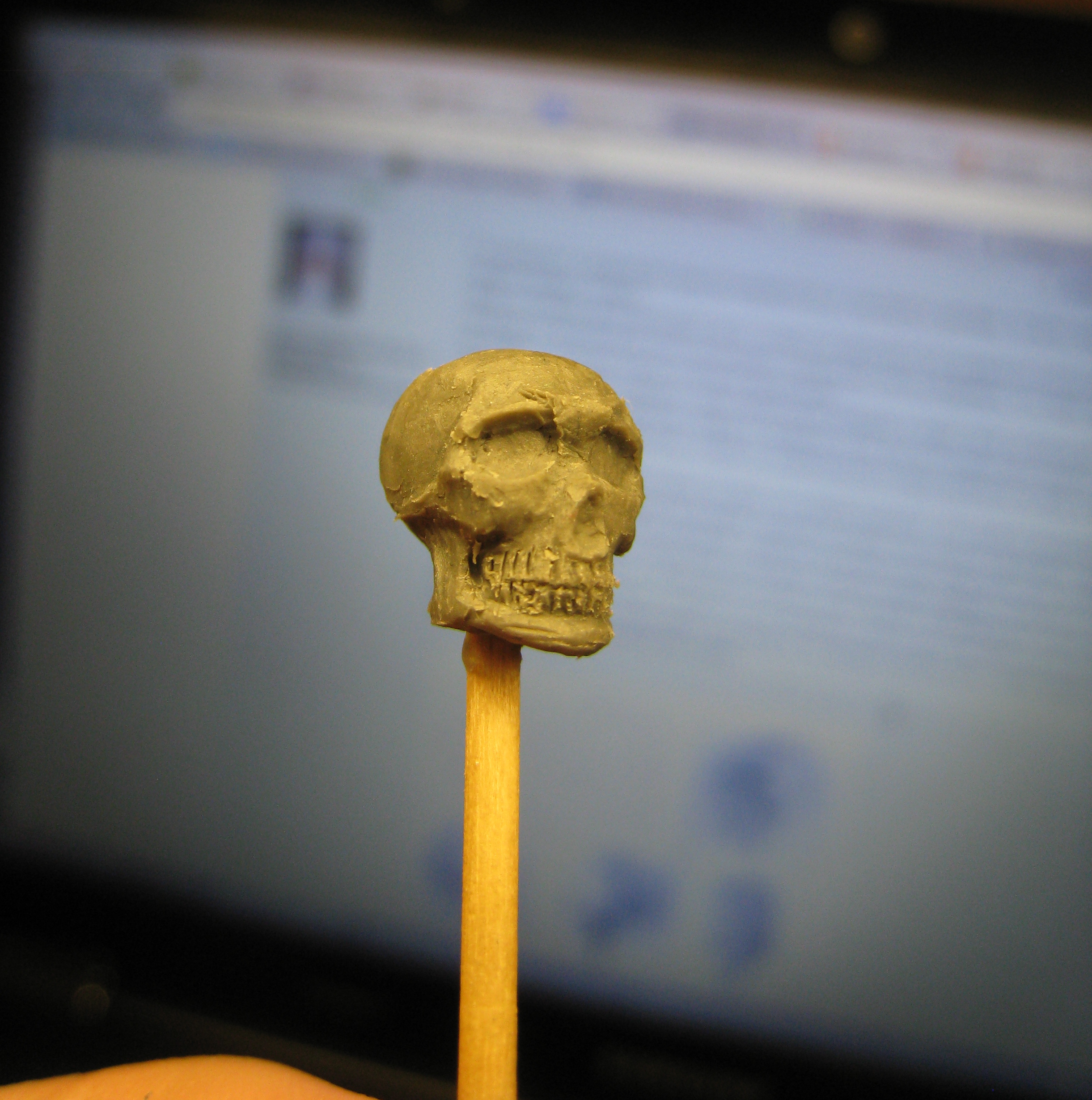 >>18305 Сделал давно уже, сегодня доделал ещё одну тренировочную черепушку. Сделал почти те же ошибки, что и в прошлый раз глаза высоко, объем черепа недостаточный, но вроде в меньшей степени. В общем теперь мне надо слепить чистовую черепушку в 2 раза меньше для фигурки.