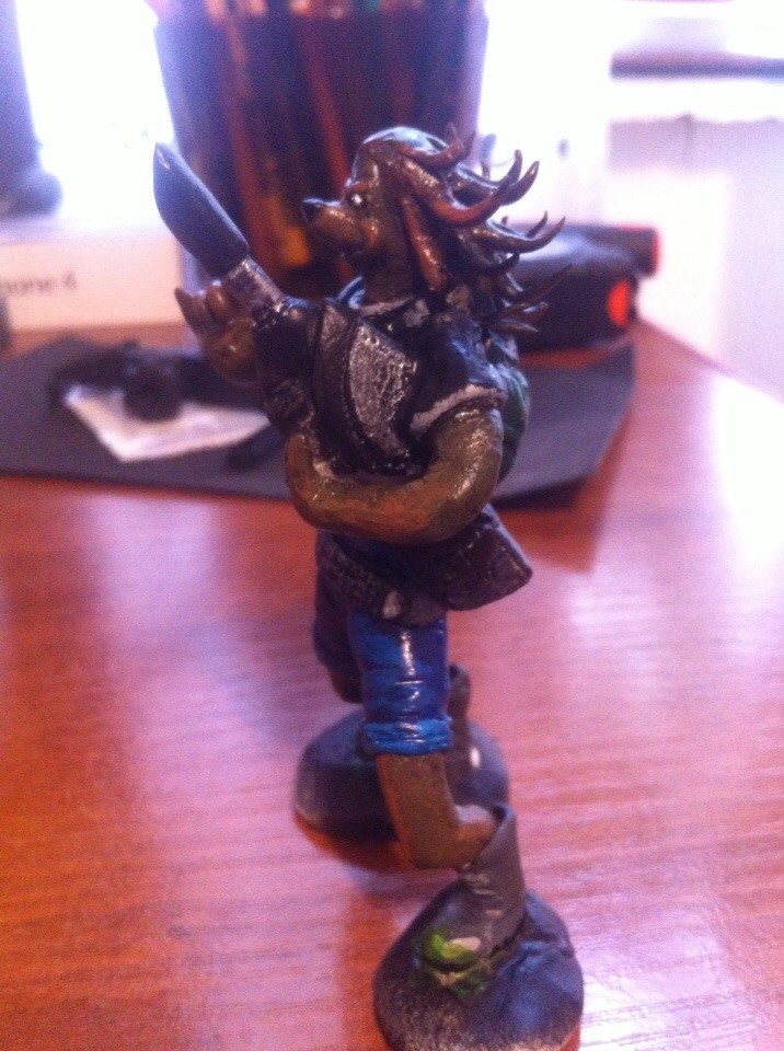 Как красил? Я долго добивался желаемого цвета кожи Пирамидхэда. Сначала он был темно-серым, потом каким-то голубоватым. Потом я внимательно рассмотрел фигурку Пирамида (лимитированное издание) и нашел, что он точно не темно-серый. За два вечера я сделал его таким вот розовато-серым. Выступающие вены нарисовал густым акрилом (точнее, наложил его кисточкой).