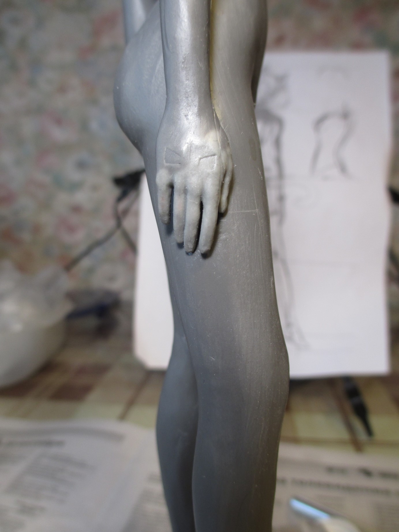Клятый сосач тормозит. Вот хотя бы так сделать. И живот убрать, а то все равно ножка кажется чересчур худенькой. Повторюсь, это мое мнение. И обрати внимание на замечательную фигурку http://2ch.hk/pvc/src/1334430999237.jpg Видишь, при равных с тобой пропорциях, ноги, особенно голень, намного мощнее, а тело более худое. кк