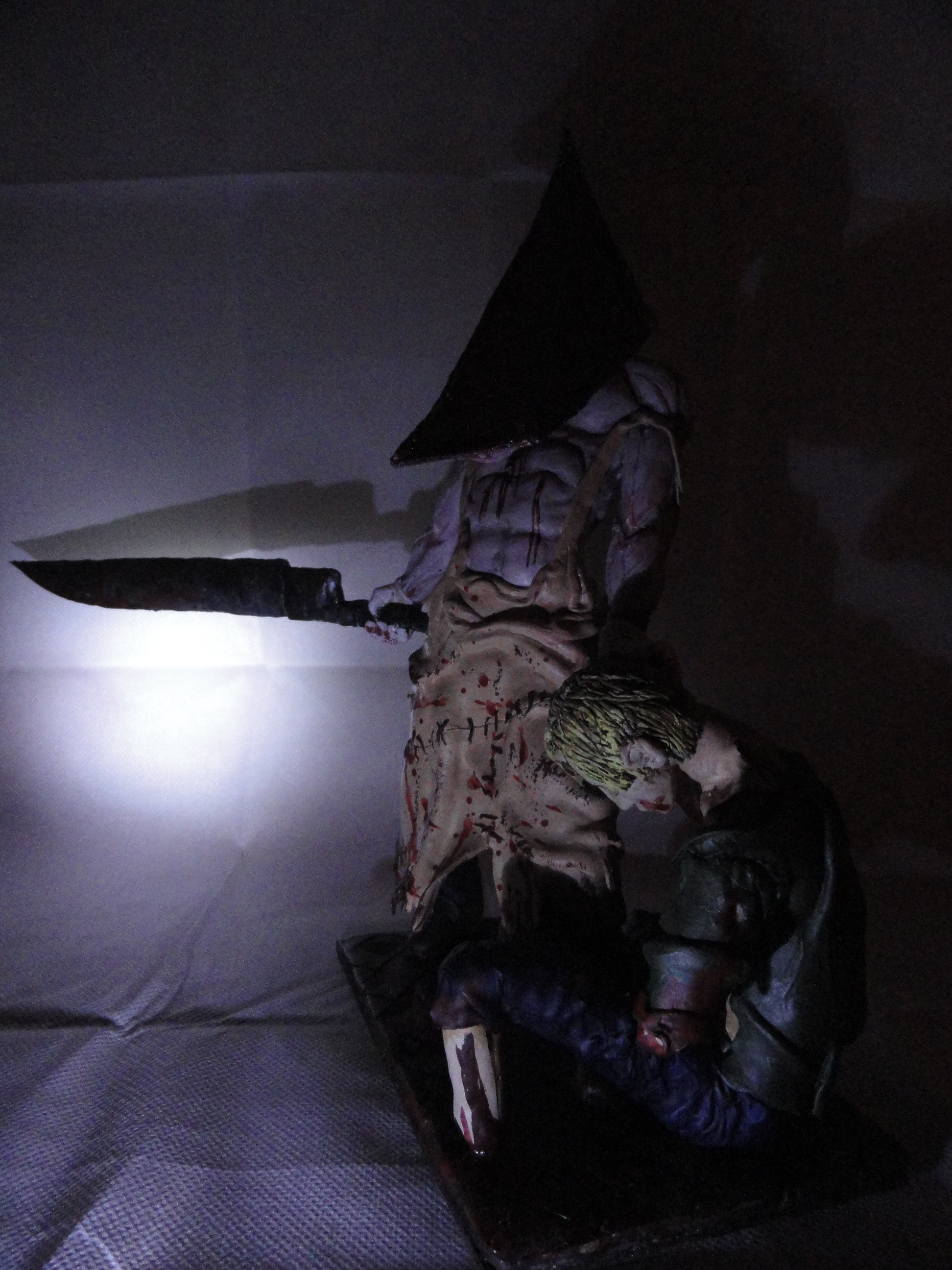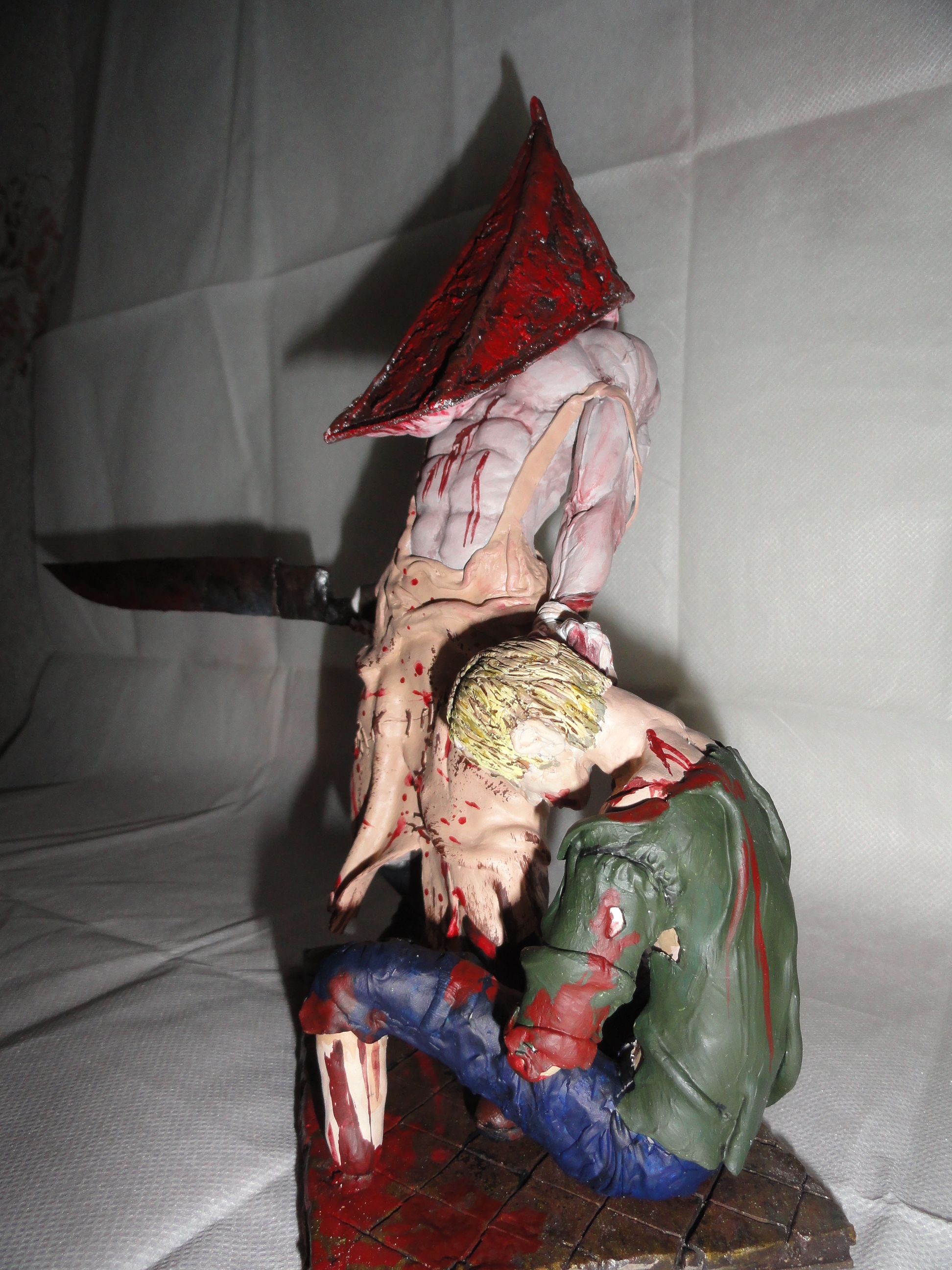 Здравствуйте. Я решил избавиться от кучи глиняных Сестер. Понял, что эфапласт - адский материал, из него очень сложно лепить. В итоге выкинул скульптурки на мороз. Из 9 сделал 1. И то хорошо. Перешел на пластику. Сделал хоббита (выше был). Делаю фигуру посложнее - Пирамидхэда. Он будет не один, а вместе с Джеймсом Сандерлендом.