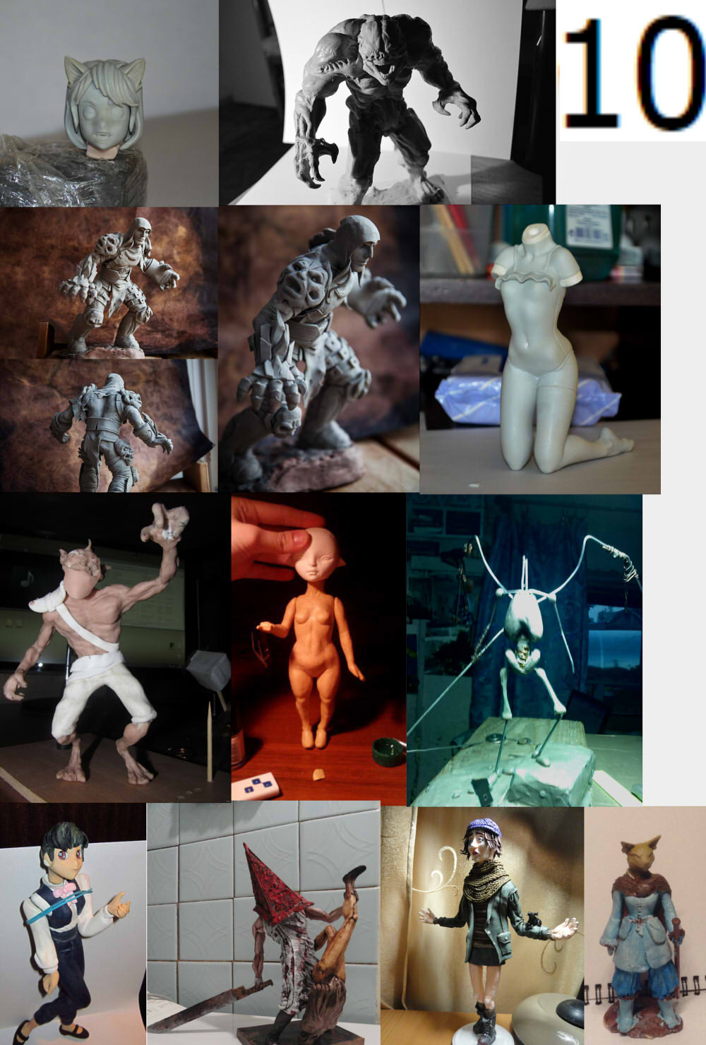 Всем привет. Скульптурю давно, с детства, и всегда относился к этому лишь как к хобби. Потому развитие было медленным и неспешным. Решил начать наконец совершенствоваться, больше внимания уделять деталям, перестать срезать углы, наконец-то научиться в лица и увеличить скорость работы. А там и перестать шугаться скульптуры красить (страх испортить гложет внутренности).