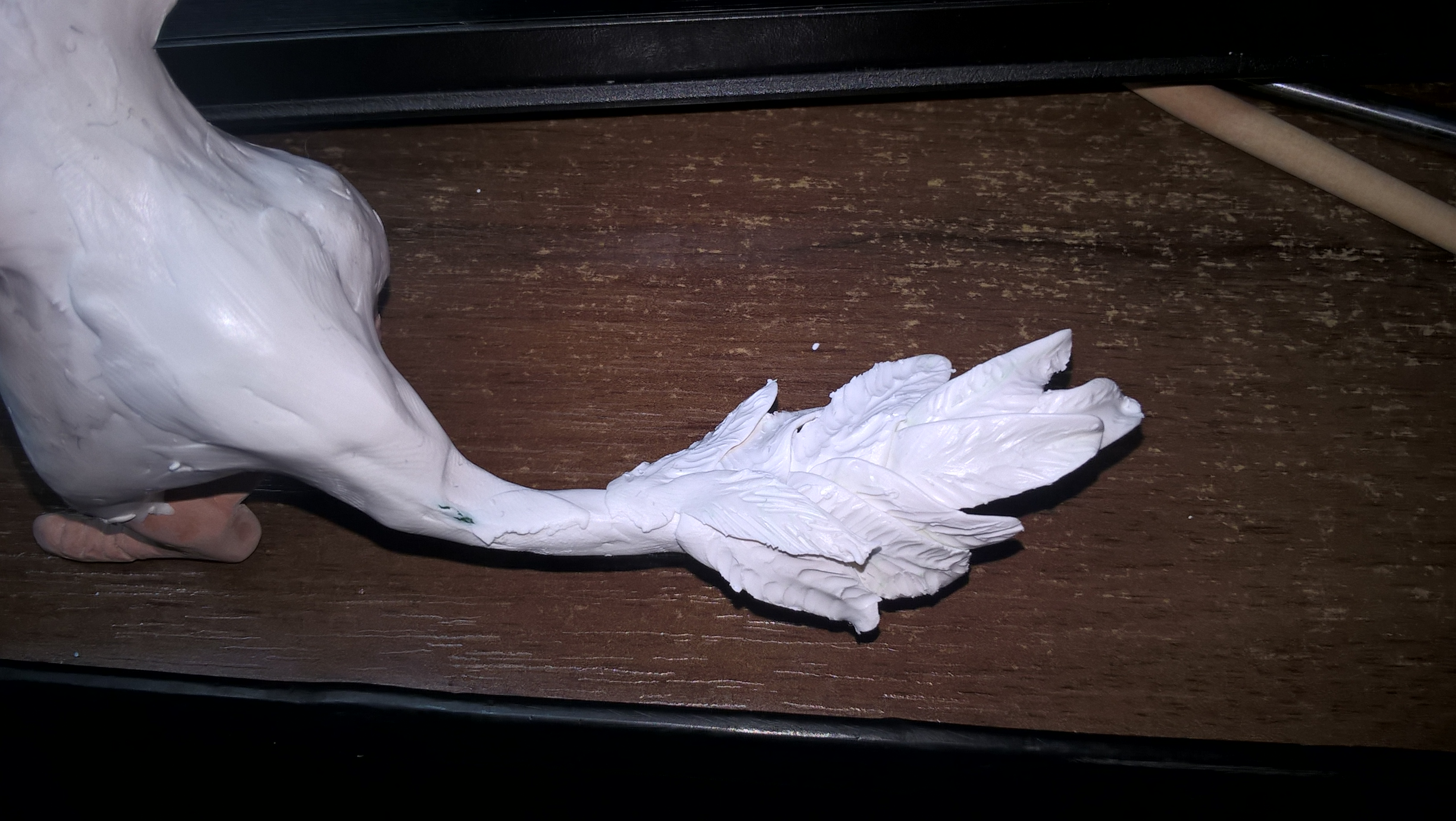 >>28994 Спасибо. Это обычный пластилин "гамма увлечений" скульптурный. Каркас- скрученная стальная проволока, крылья прикрепил отдельно тонкой медной проволокой, и для устойчивости всей конструкции облепил пластикой. Красить не буду. Насчет инструментов, в основном пользуюсь теми, что слева на пике. А те что в упаковке, пока особенно не использовал. Год назад, когда его лепил еще зубочистки были, которые обтачивал до разной толщины.