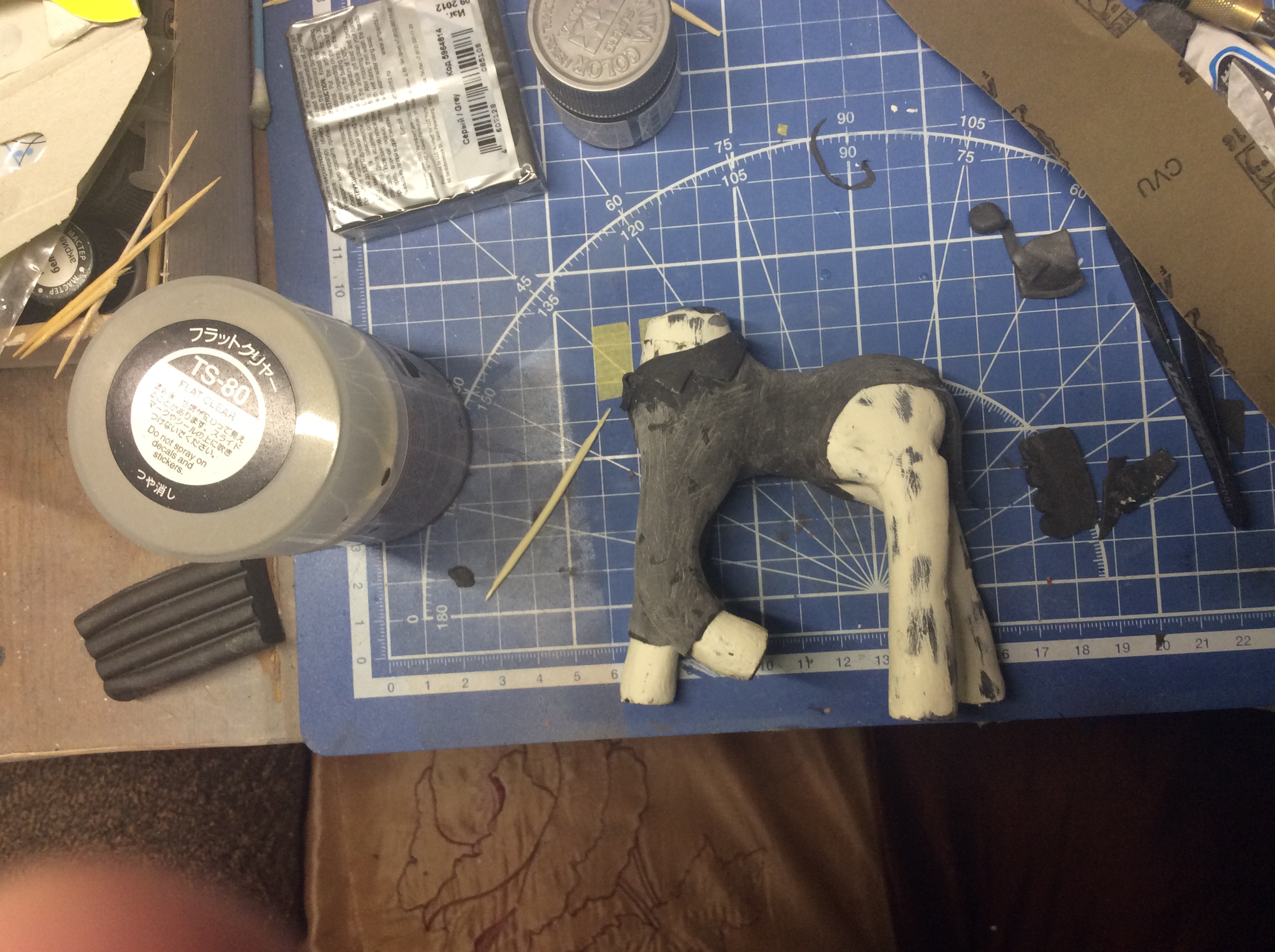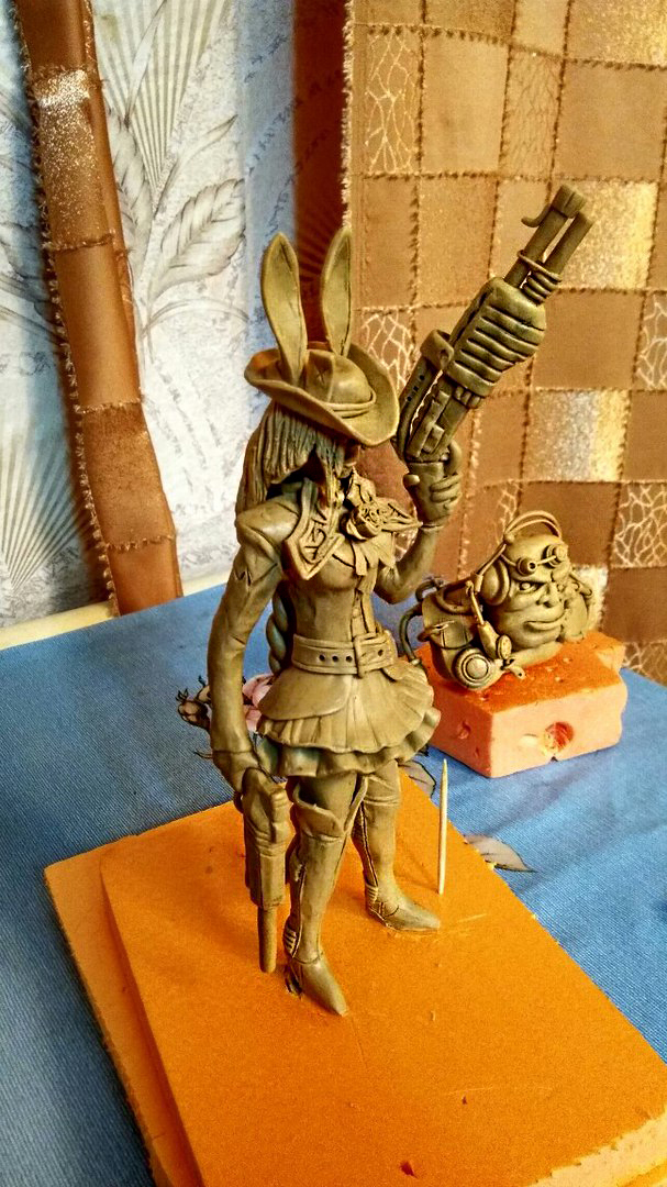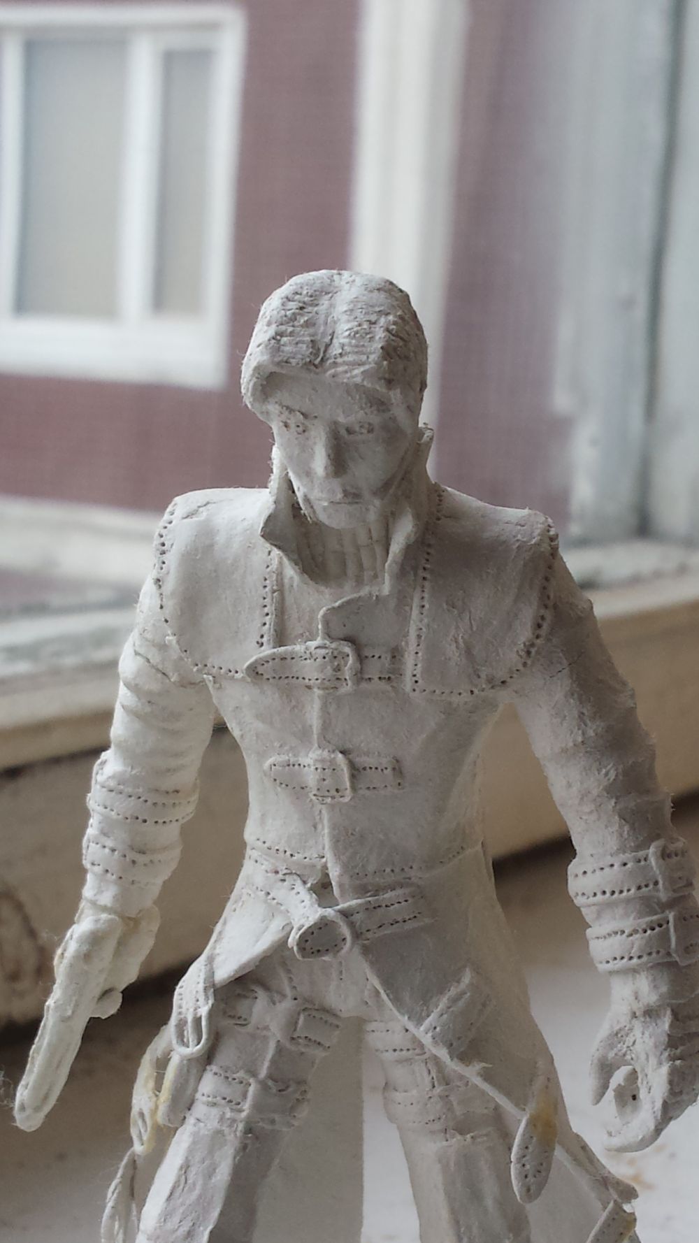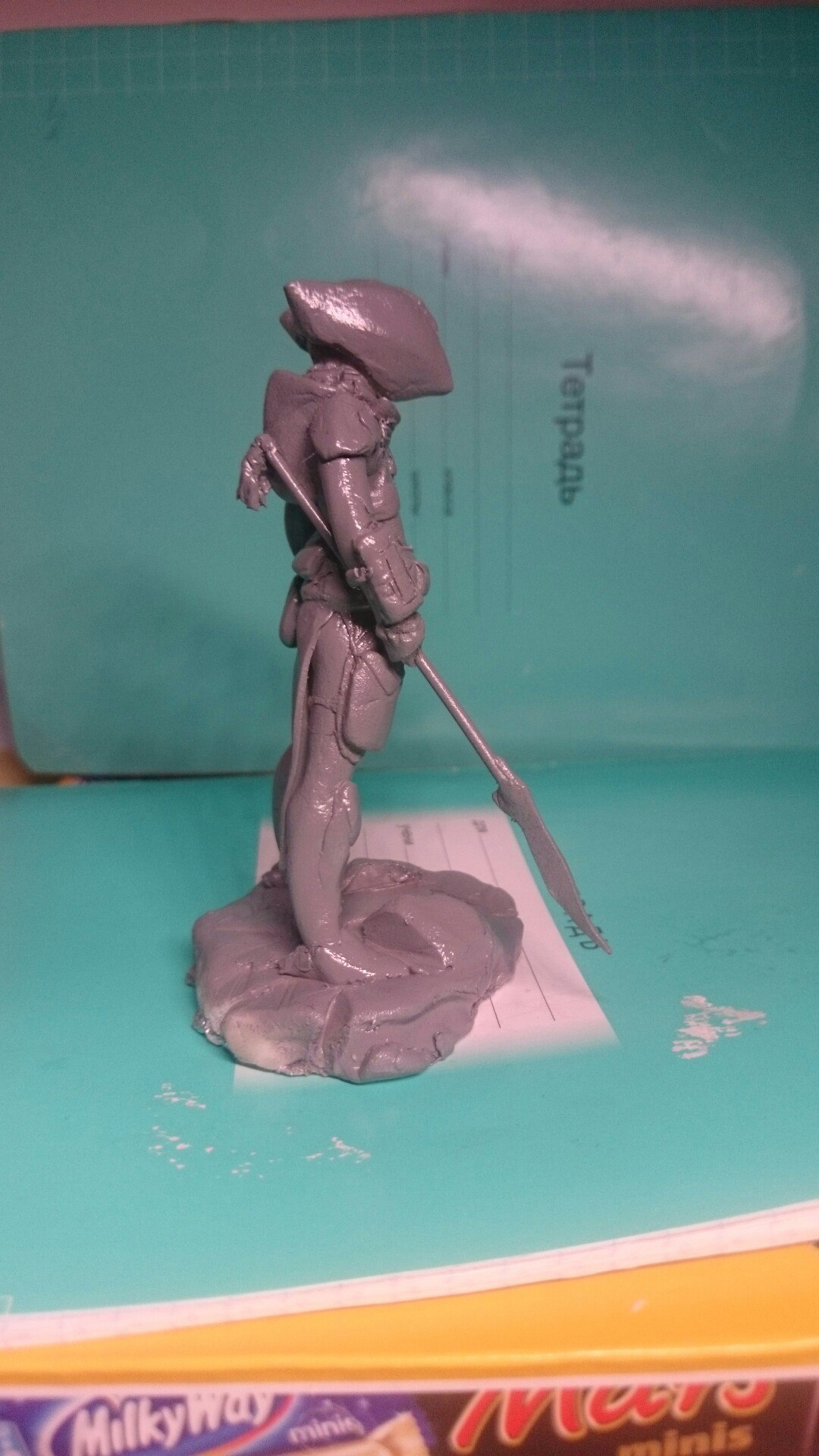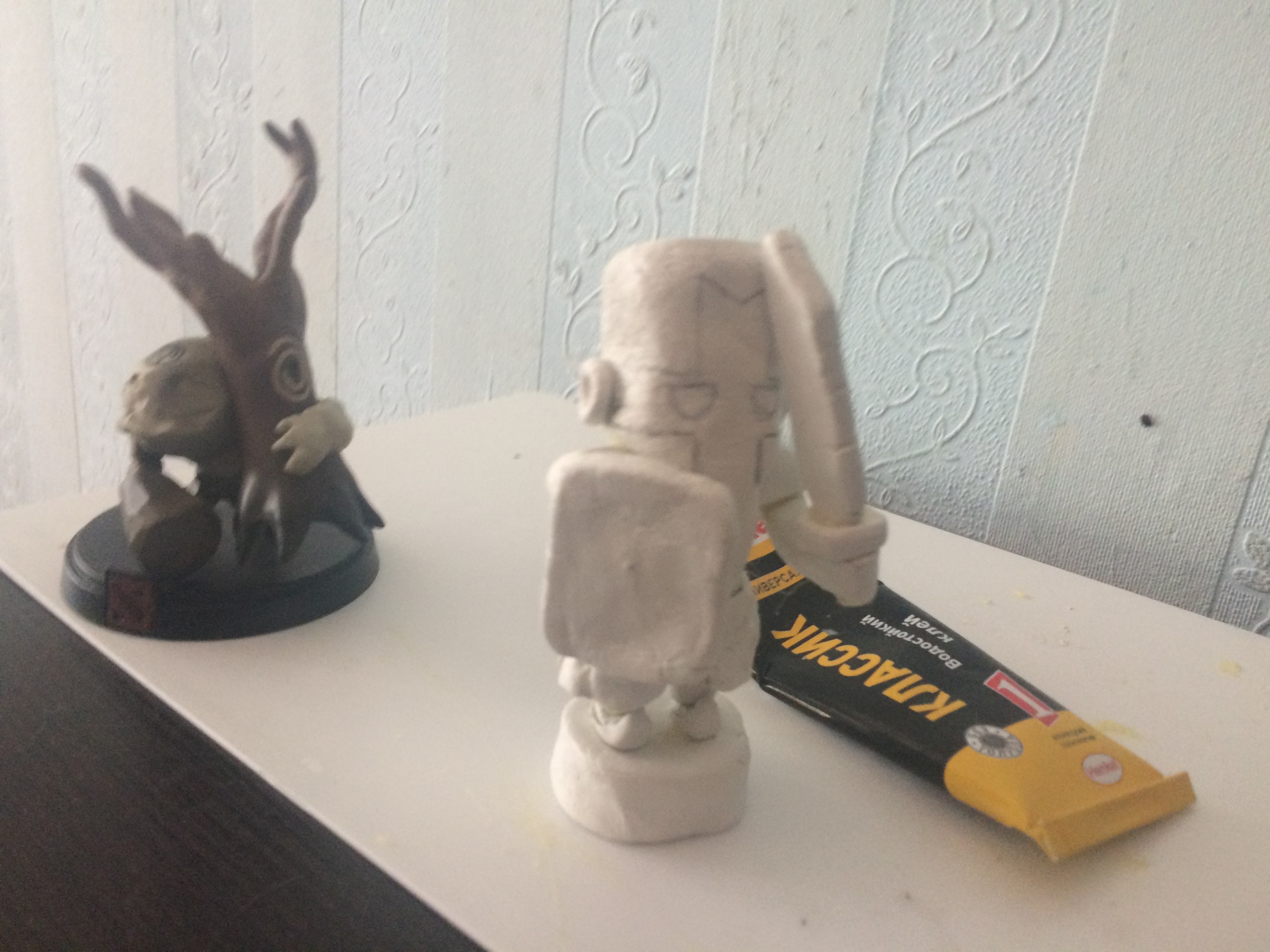 Прогресс. На фото вскрылось несколько косяков. Завтра шлифану все в последний раз и буду детализацию делать. Алсо, понял, что делать фигурки из самозастыващейся пластики лучше - можно настраивать позу, сколько угодно. А то я неправильно ноги поставил сейчас и все, практически никак не могу изменить их положение.