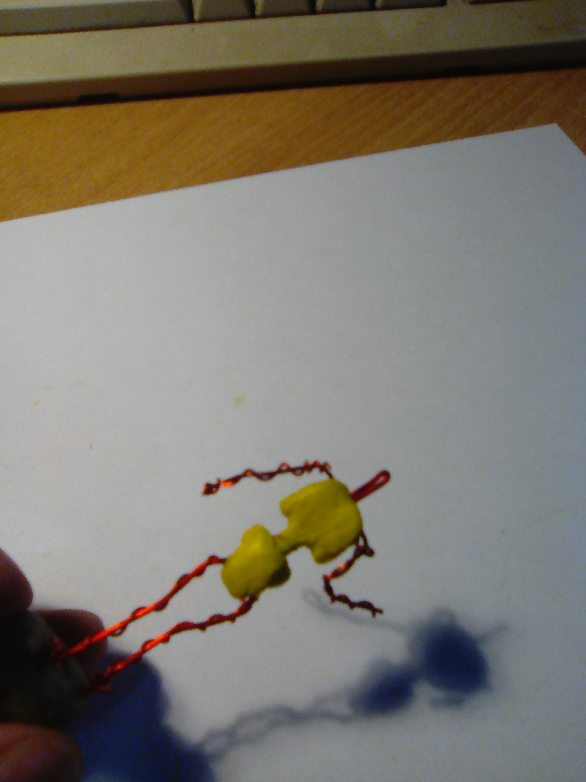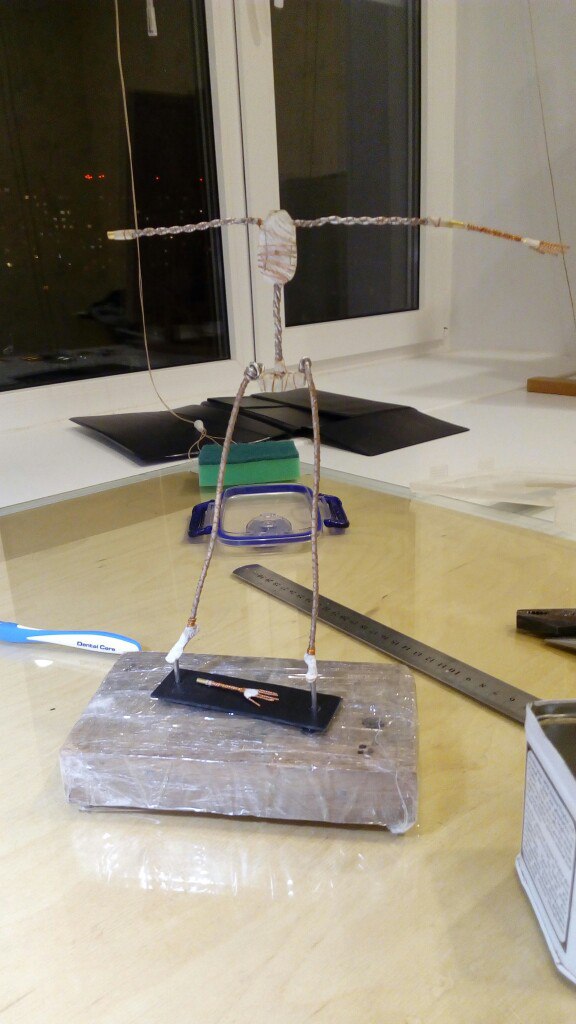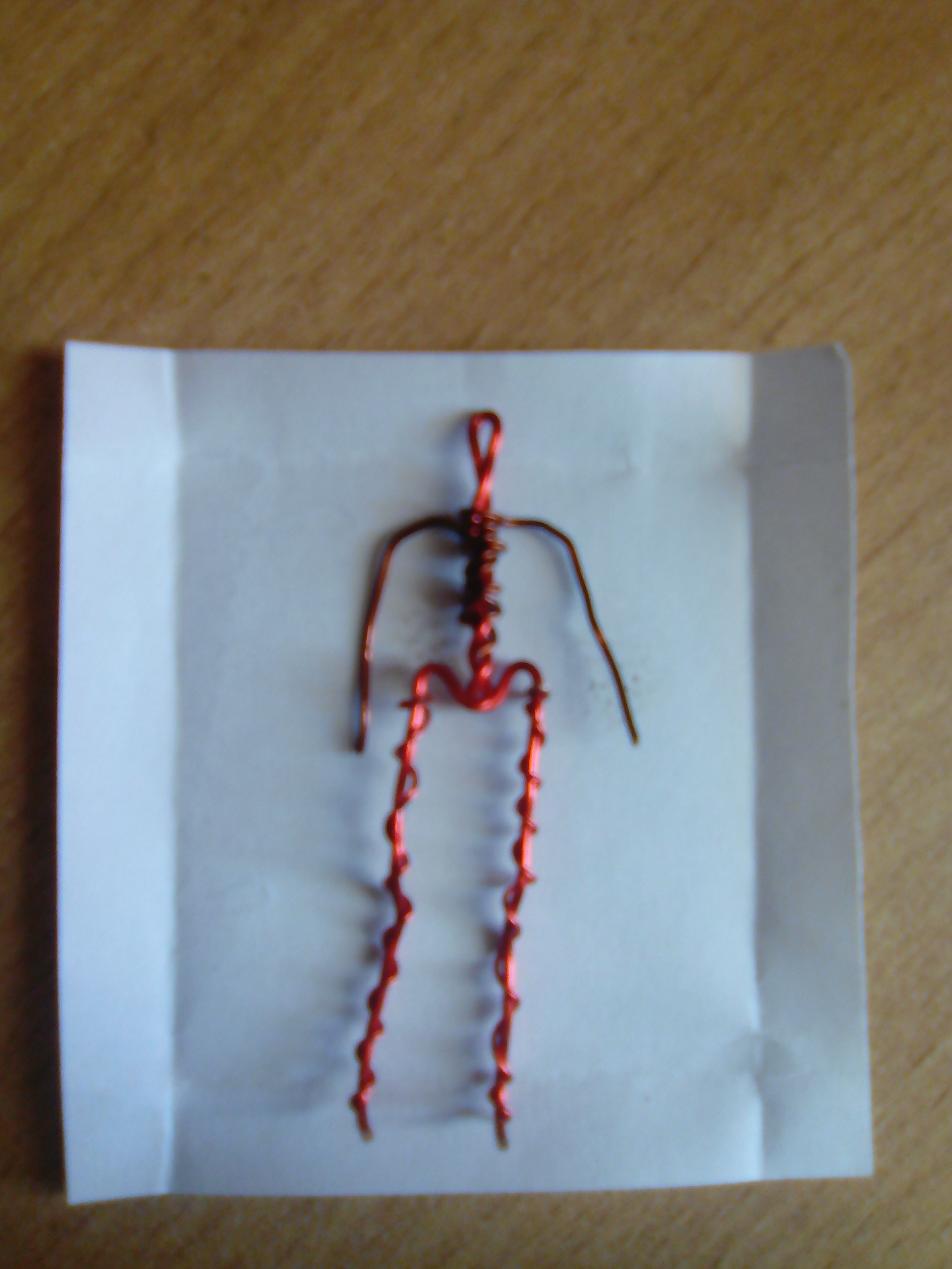>>25742 Берешь длинную проволоку, если тонкая - скручиваешь пополам, а потом просто сгибаешь по нужной форме, где идет соприкосновение (например ты руку отмерил, проволоку согнул напополам) - также скручиваешь. Или берешь две проволоки (допустим одна для тела+ноги, вторая для рук) где они соприкасаются - скручиваешь\завязываешь, а сверху фигачишь на стык эпоксилином или чем-то вроде, самой запекайкой не надо - бесполезно. На все сгибы также можно налепить эпоксилин.