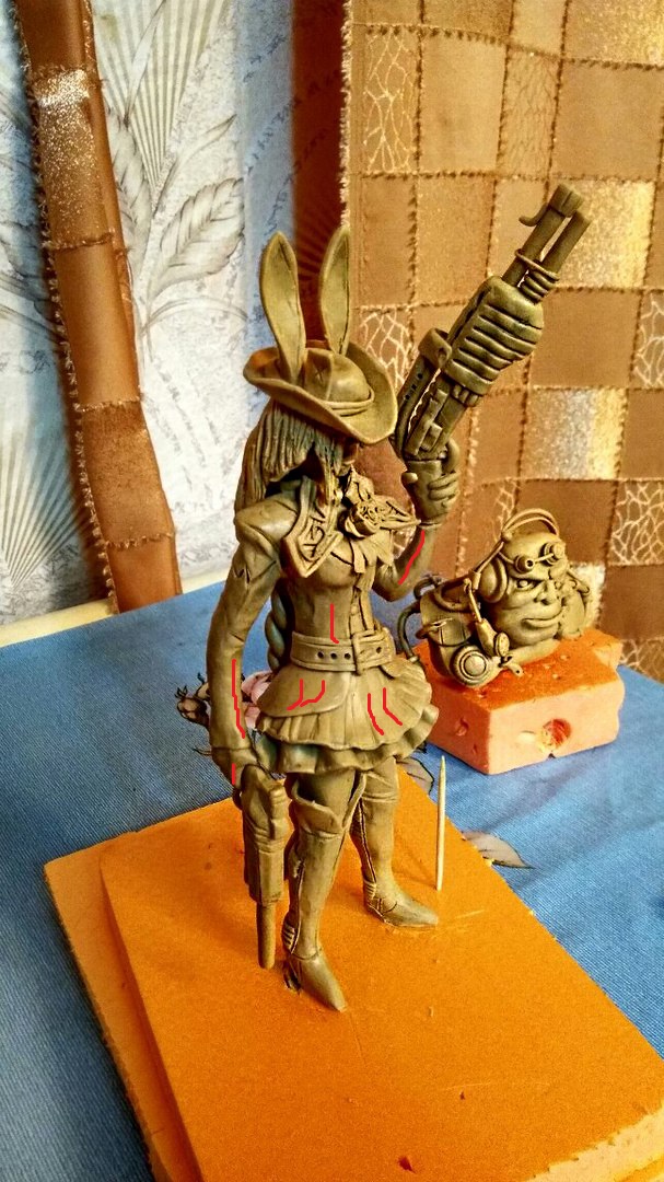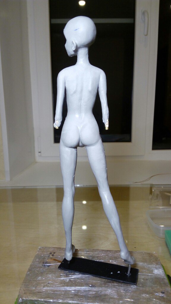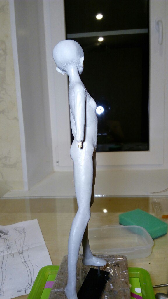 Вроде до покраски выглядело гладко, но после покраски сразу видны шероховатости, неровности и прочее непотребство. В этом конечно минус пластики телесного цвета,при лепке не особо видны мелкие косяки.