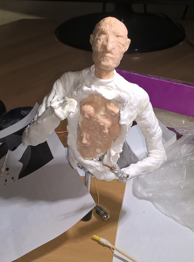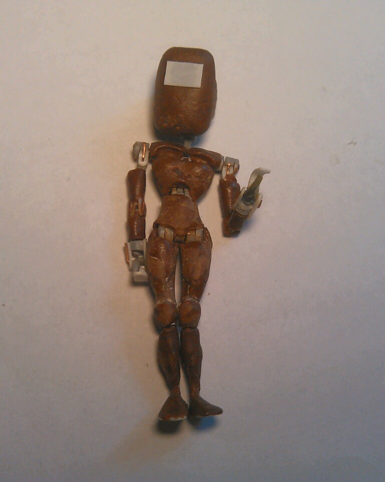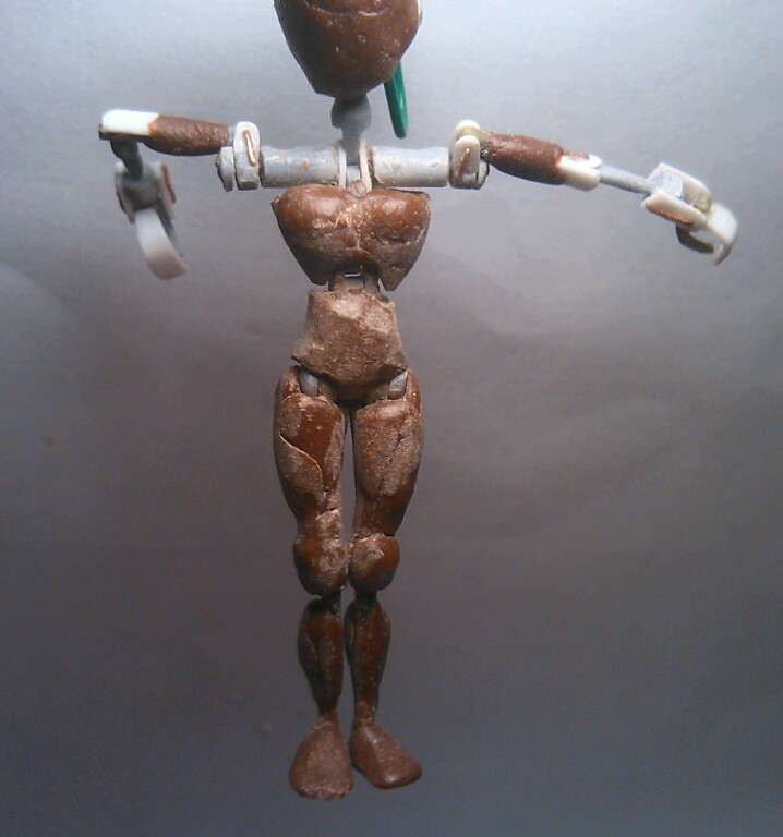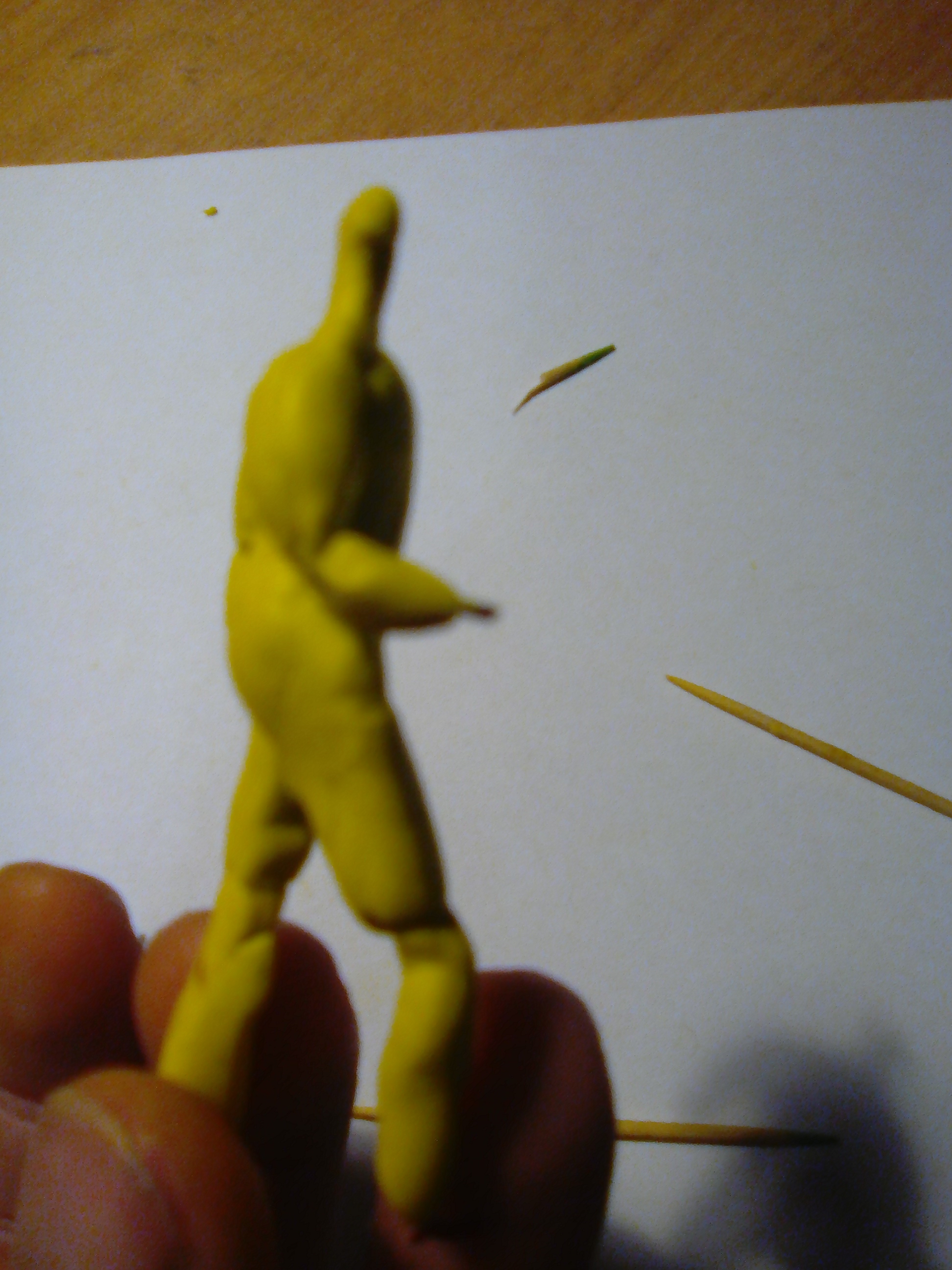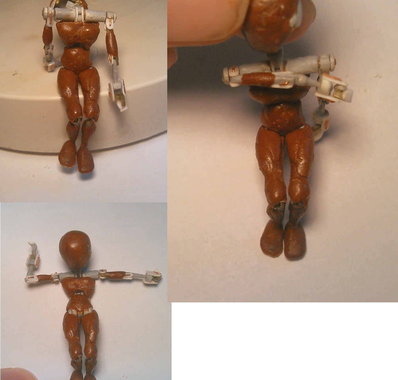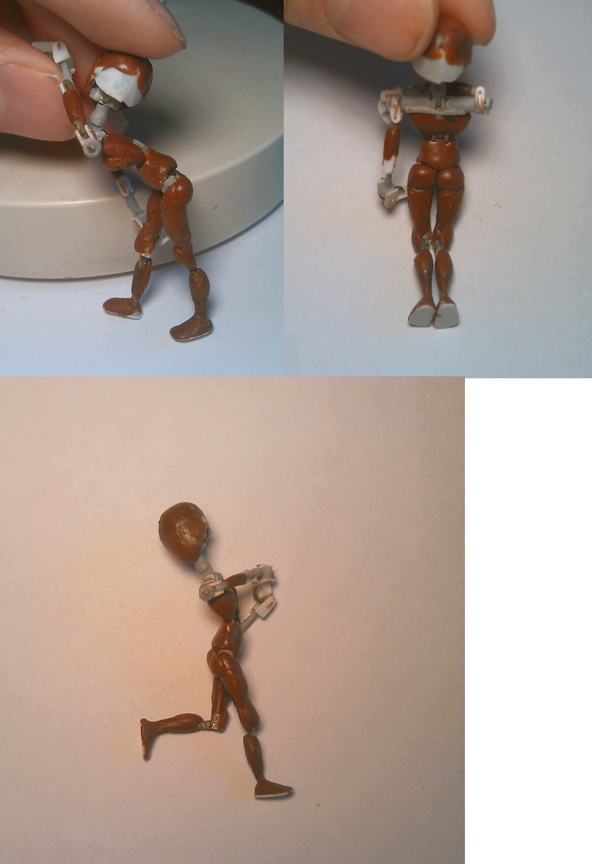 >>25752 или ещё лучше- сделай подвижный каркас человека с норм пропорциями и поставь его уже в нужную позу. Просто налепи затвердевайки на каркас везде кроме суставов, подожди пока затвердеет и двигай.