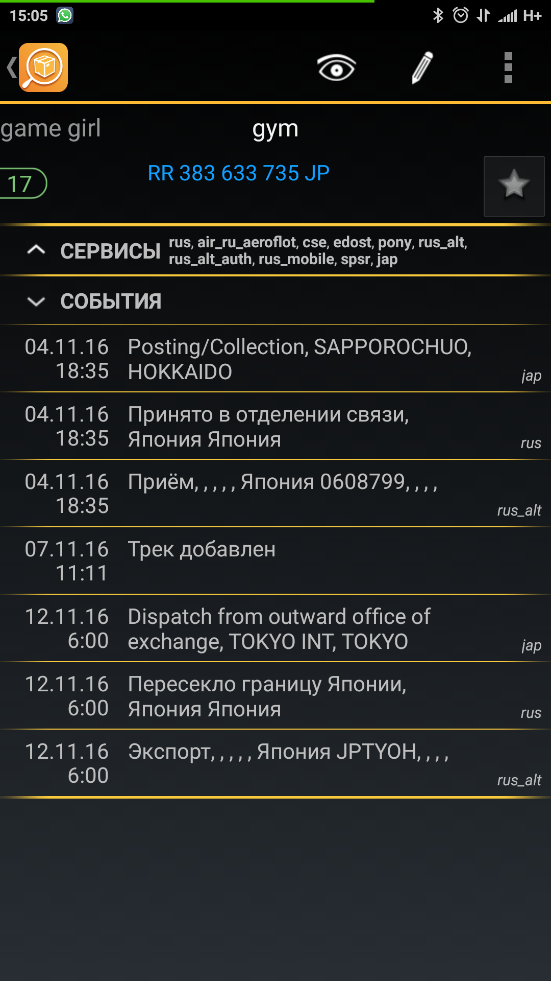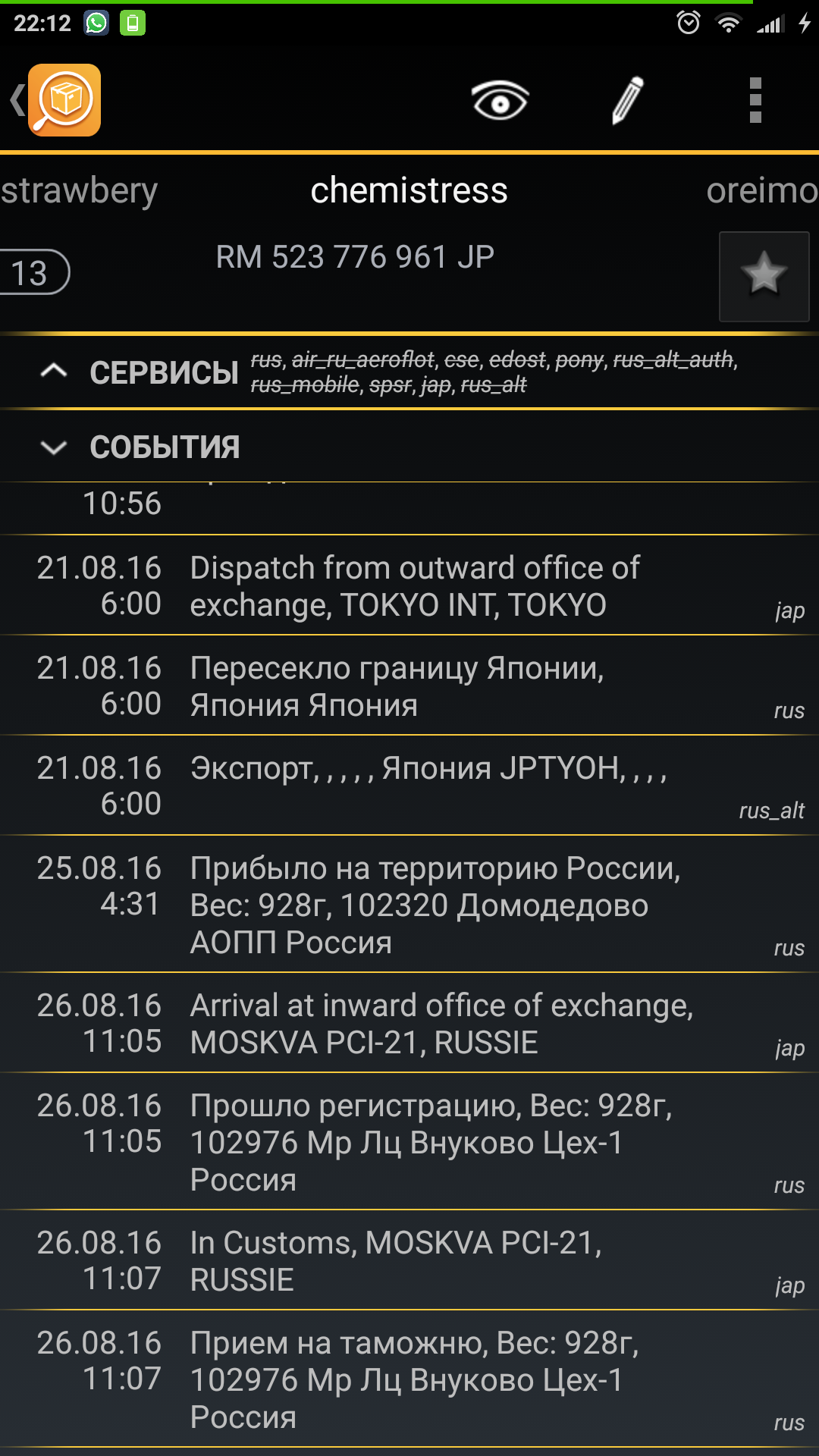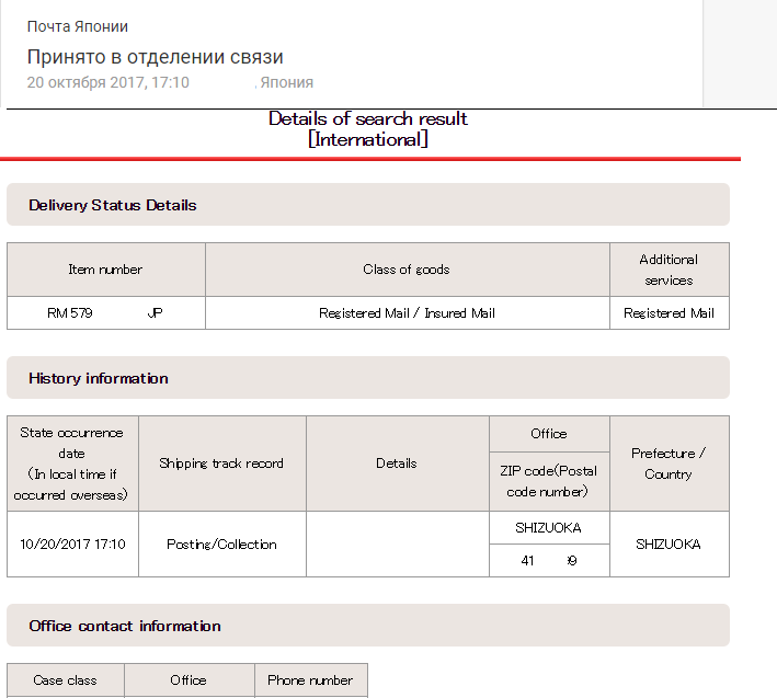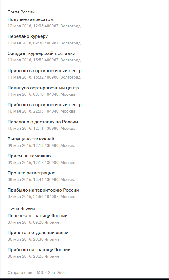 Вот прошлой посылки трек к примеру. Посылка принята 26 числа в 14 с хуем по местному времени, 27 числа в час ночи она уже в Осаке (400 с хуем километров от отделения почты моего продавца между прочим), на следующий день посылка уже улетела в Бульбашку. Почта самая обычная (Regular), при том доставка бесплатная. А в Мандараке реально какие-то пидорасы и хуесосы сидят, чтобы отправлять настолько жлобской доставкой, четыре дня посылка в отделении висит, пиздец, и это то за мои 11 баксов! Бляди!