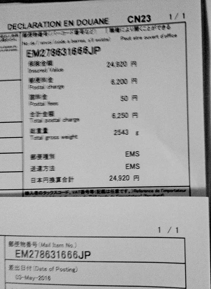 >>28278 Вот трек моего заказа на майские. 4 фигурки емсом за 5560 йен. Релиз последней late April точнее не помню, 2 мая по данным спёрбанка я оплатил заказ. Так что, я надеюсь, тебе повезет, посылка покинет Японию раньше 30-го, выиграешь 5 дней.
