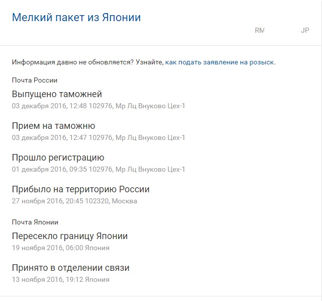 >>28007 > Как правило через 5 дней после того как посылка покинула Японию, она приезжает на склад в МСК, завтра будет 10 дней и нихуя. Это тебе очень везло раньше. Две-три недели может не трекаться спокойно, а еще скоро новый год и на почте начинается ад и погибель.