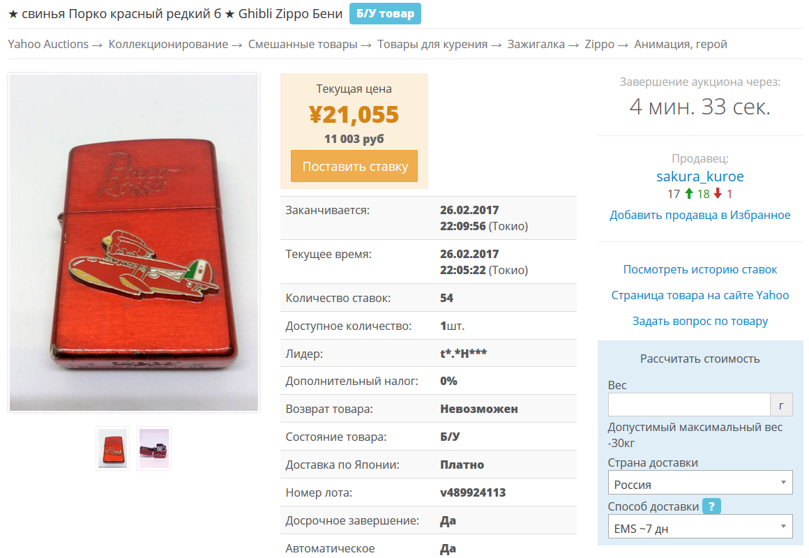 Раз уж зашла речь про аукционы. Пришла мне тут в голову на днях идея купить зажигалку. Думаю, обычная магазинная нафиг не нужна, а пусть будет японская, анимешная, даже бэушная. В очевидных местах естественно их нет, посмотрю ка на ракутене, амазоне там. Первая неприятная новость - нихонцы дрочат на Амэрику. Есть новые Зиппы с Люпеном, Евой, Ван Писом. Даже набор из трех штук с Ямато есть, или там Дэйт э лайв. А где же маде ин джапан? Вот тебе Ронсон, Колибри, еще конторы, только про аниме забудь. А ч0рную хотя бы? Чёрных тоже нет, максимум кожаные. Ладно, что там на аукционах. Вторая неприятная новость - на пикрил никакого бюджета не хватит. Один (один) лот из 13-ти японских зажигалок, описание промптом заявляет "хлам", ну и зачем мне нерабочие. А там и ч0рная была и миниатюрная, и ведь купил кто-то. Отсюда вопрос, как и где искать, может, я запросы неправильно писал и не в те места. Только ебэй не предлагайте, барыги с множителем 1,5 не нужны.