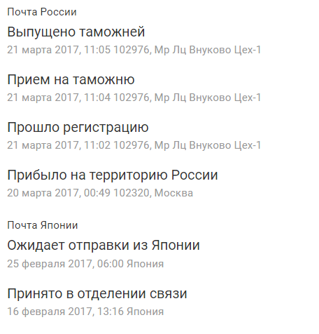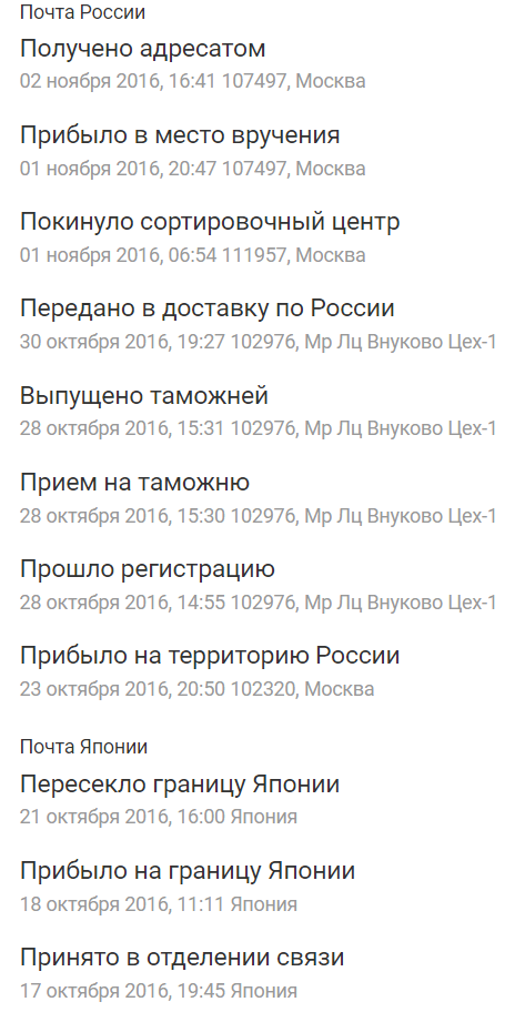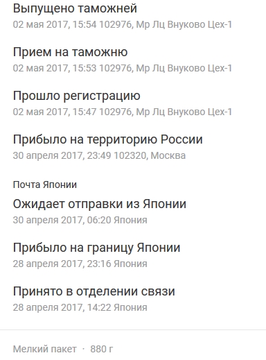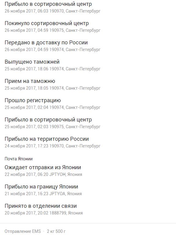 >>28747 >Про лоли я вообще пошутил. А я нет жду как раз двух полуголых лолей. >Задержать могли только из-за большой цены, у таможенников есть такой пунктик. Большой - это насколько? До 1000 евро в месяц таможенникам похуй. >Всё приедет. Праздничные завалы до сих пор разгребают. Там уже подраскумарились по сравнению с тем пиздецом, что был. Вы только посмотрите на это дерьмо, что было под НГ по треку: 20 ёбанных дней посылка ПРОСТО валялась на сраном складе после таможни и ее ПРОСТО не отдавали в доставку. И это не одна такая была, а три.