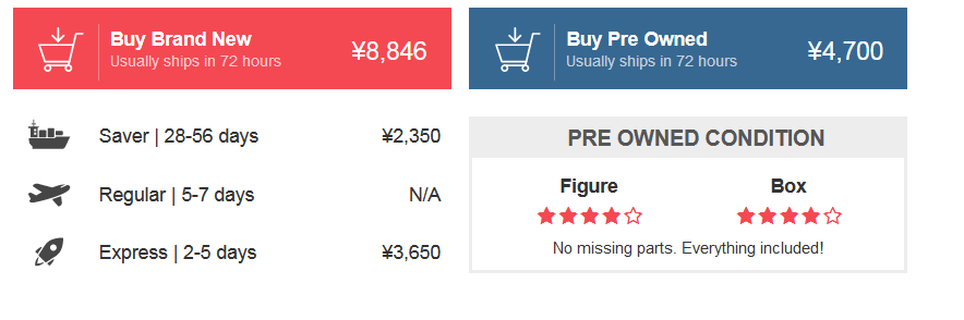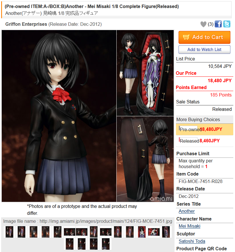 >>28908 >Анон, может сможешь помочь мне? Надеюсь, что ты не зажидишь 23.8к йен на свою вайфу (не считая профита посредников и доставки). http://www.suruga-ya.jp/product/detail/602017614001 Можно ебаться с зенмаркетами (только хуй знает как), можно тупо заказать кликнув по баннеру на суругуе что внизу. Получится 245 баксов за все про все. Но сам понимаешь - большее ее нигде толком нет, а брать всратый прайз - вариант сомнительный.