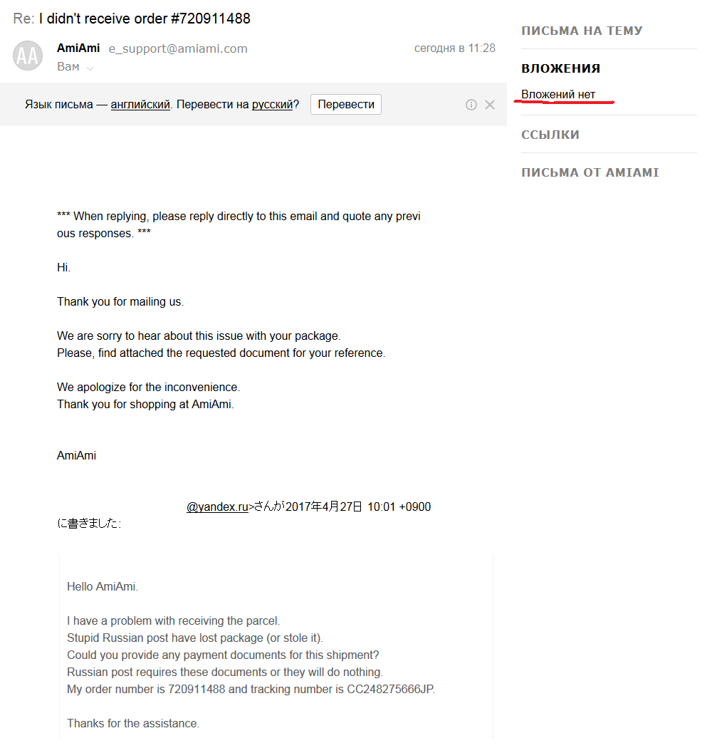 >>28846 >>28847 Спасибо, проверил, да вылетело в рашку. И что, теперь только ждать? Просто обычно посылочки ко мне приходили за 2 недели, а тут вот такое. Совершенно не хочется становится очередным героем охуительных историй с почты