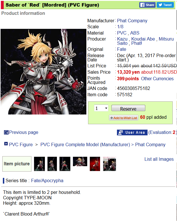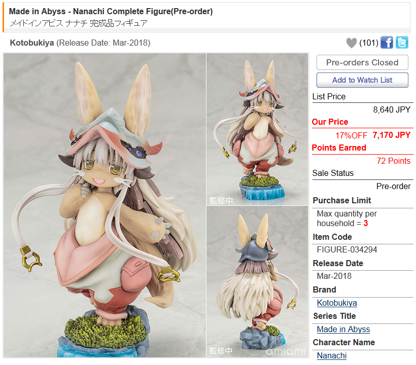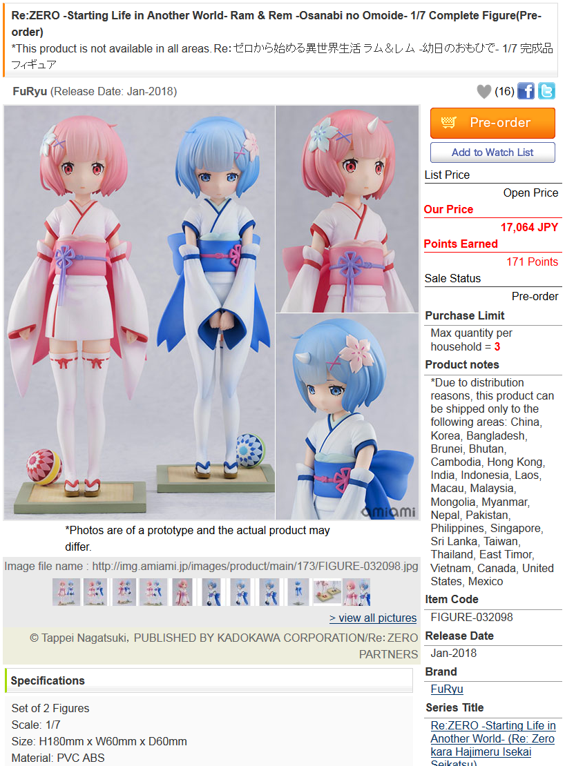>>29064 Чо-то сегодня Мадока >>29063 уже не настолько Limited+Exclusive, как казалось три дня назад. Уже http://amiami.com/top/detail/detail?gcode=FIGURE-028271 с лимитом три штуки на адрес (и запретом доставки в Japan, America, Canada, Korea, Singapore) Но 16kJPY с жабой обсудить нужно серьёзно.