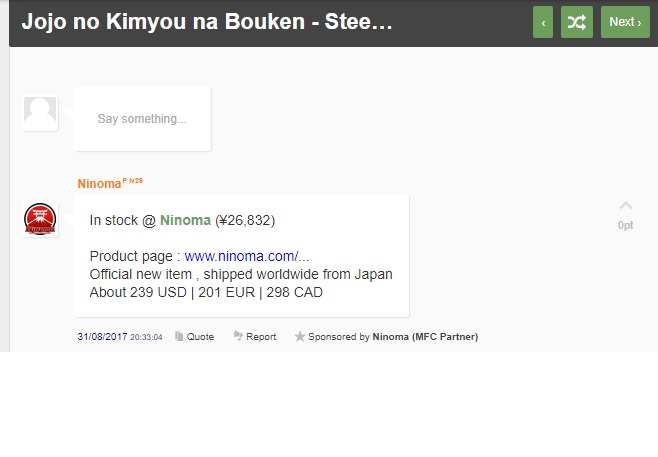 >>28252 >Но там цены настолько неадекватны, что купить на ами и пошлину оплатить будет дешевле. А вот хуй. Ту же Читогэ например нигде дешевле не купить. И еще есть примеры. Да и что вы вцепились в этот Ами? Там только новинки покупать. >Японская фигурка. На ибее. Бутлег на бутлеге, ну ты понел. Лол, у жапан продавцов на ибее за рыночную стоимость бутлеги? Да ты поехавший. У вас какие-то реально странные стереотипы с ибеем: наслушаются каких-то ебанашек, которые нихуя не смотря позаказывали бутлегов у китайских продавцов по 30 баксов и возмущаются, мол, хули бутлеги то пришли. А на деле хватает там именно попонцев с оригинальными товарами по соответствующим ценам.