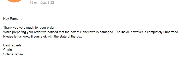 Ну и кстати, те первые заказанные Гатари >>31079 этим ебучим "сиамейлом" так еще и не пришли, но я не теряю надежды. В принципе, пишут, что этим сиамейлом реально идет около трех месяцев, так что видимо если дойдут, то скорее всего только в январе.