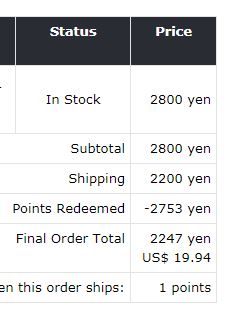 Ну зато немного осталось на пивко, отметить короче)) В общем, это была притча о том, как правильно нужно закупаться девочками ежемесячно. Заказал ЕМСом ибо в данном случае он еще как-то оправдан: 18800 анимешных на 11 фигурок - 1709 йен за каждую фигурку, по цене как САЛом отдельно слать, да все-таки побыстрее. Продолжим 22 числа еще на пару сотелов, хех.