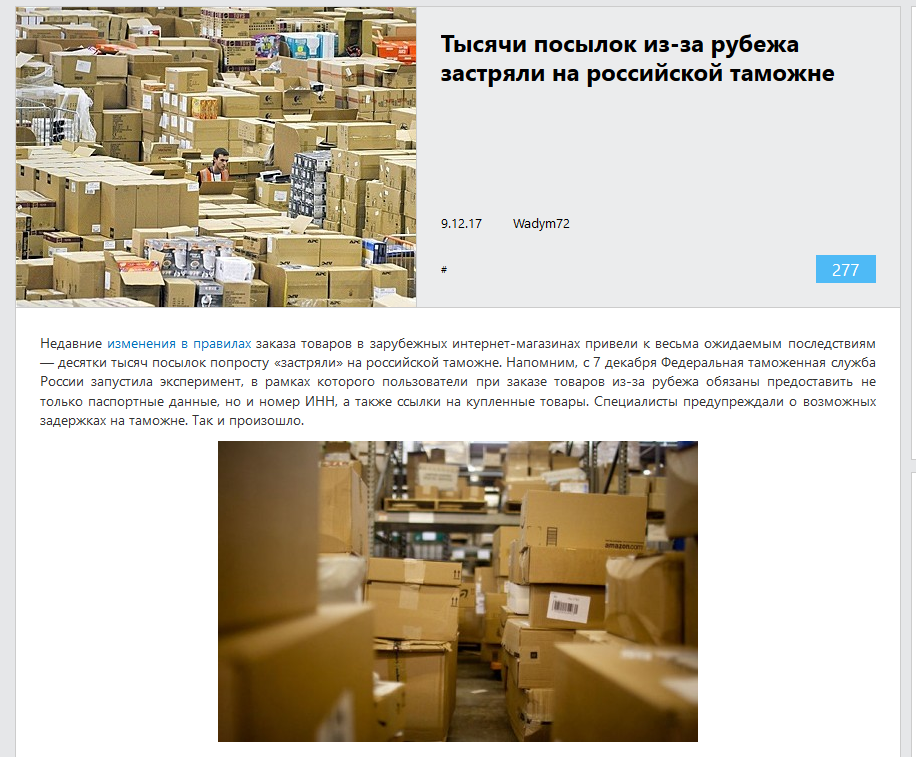 Ну или к слову о московской таможне: вон, заказывают белорусики просто тысячи посылок на один и тот же адрес (конторы в ДС) и на свои имена с фамилиями соответственно и все нормально приходит. И в чем тогда проблема то?