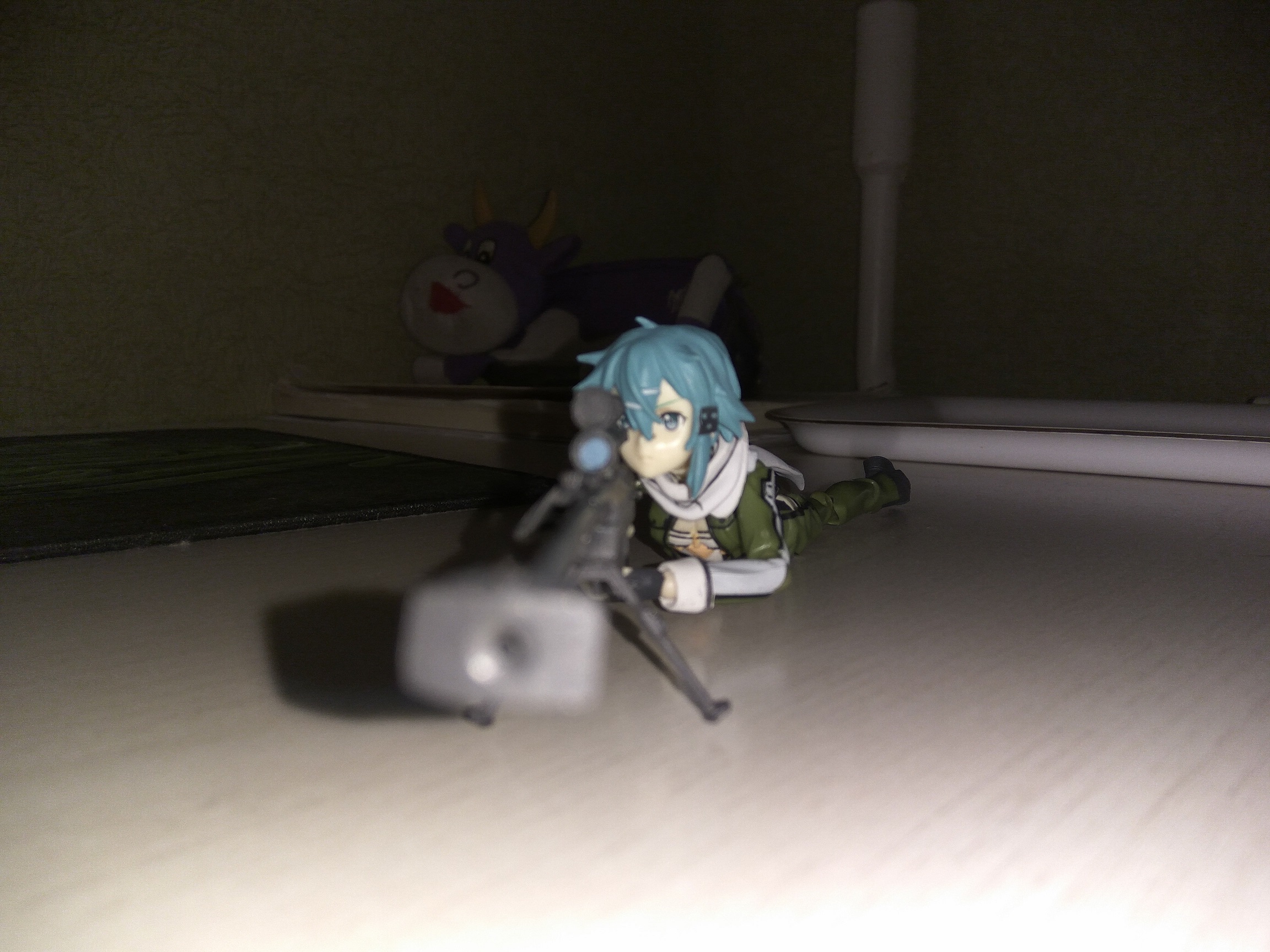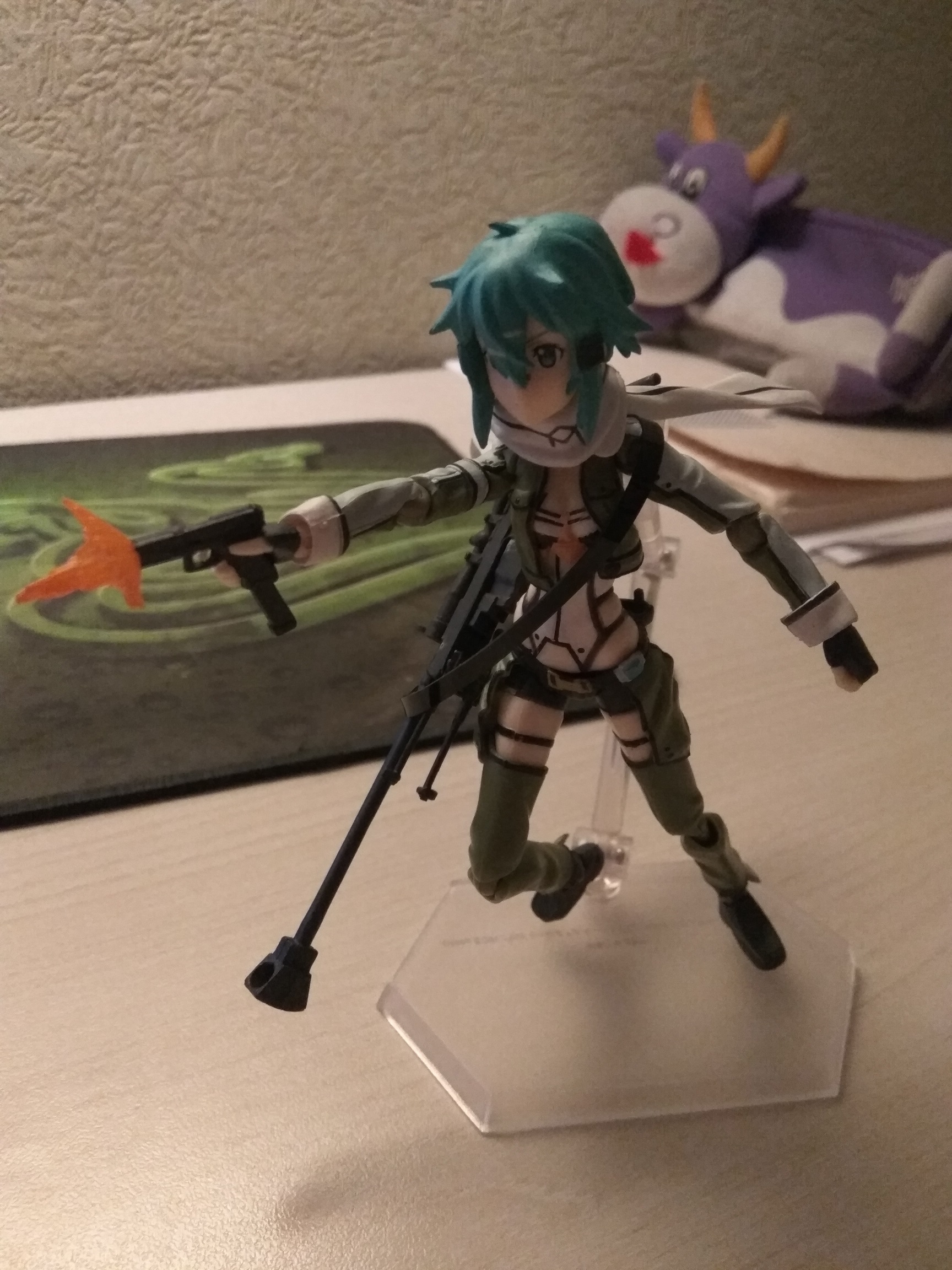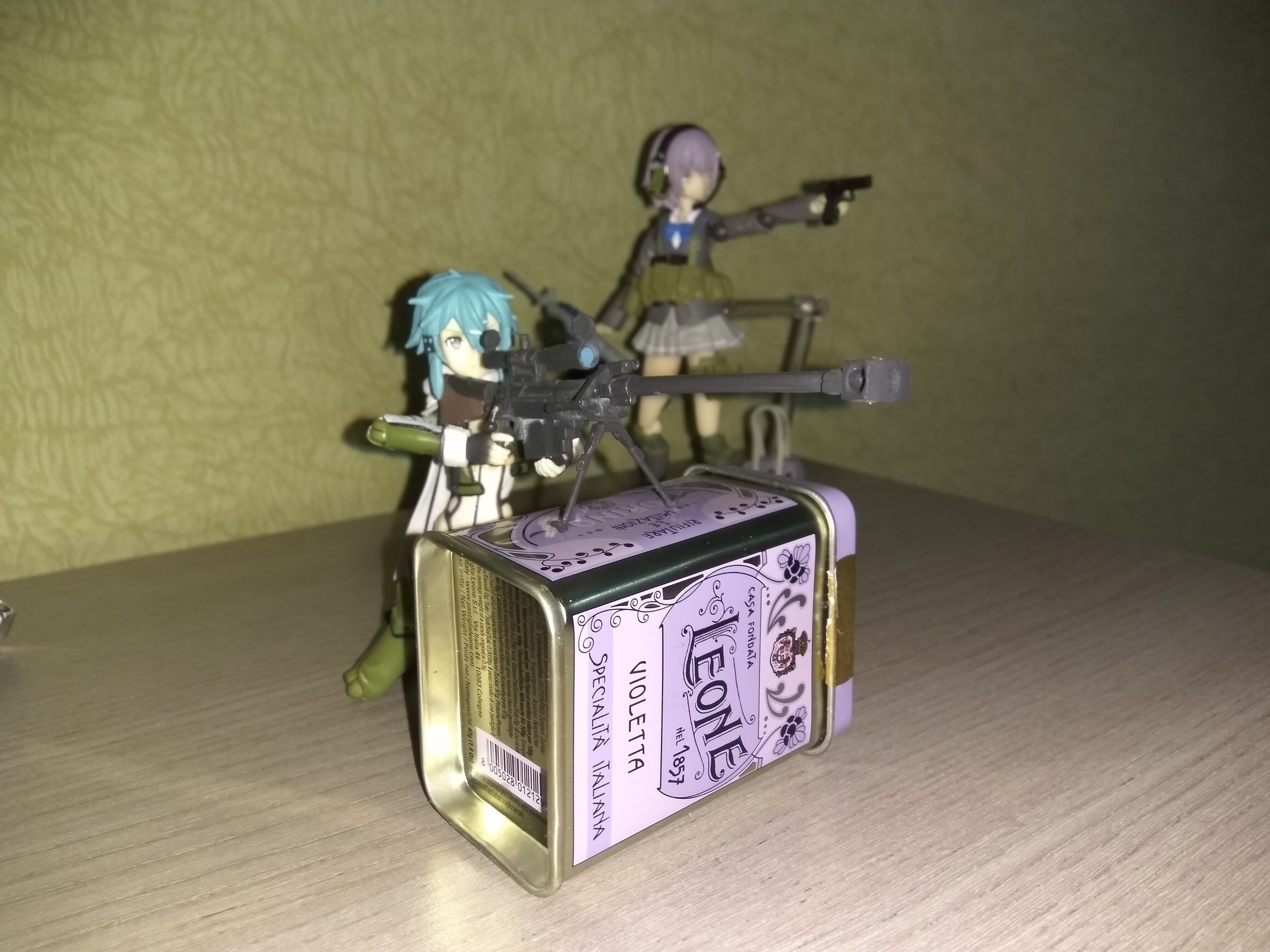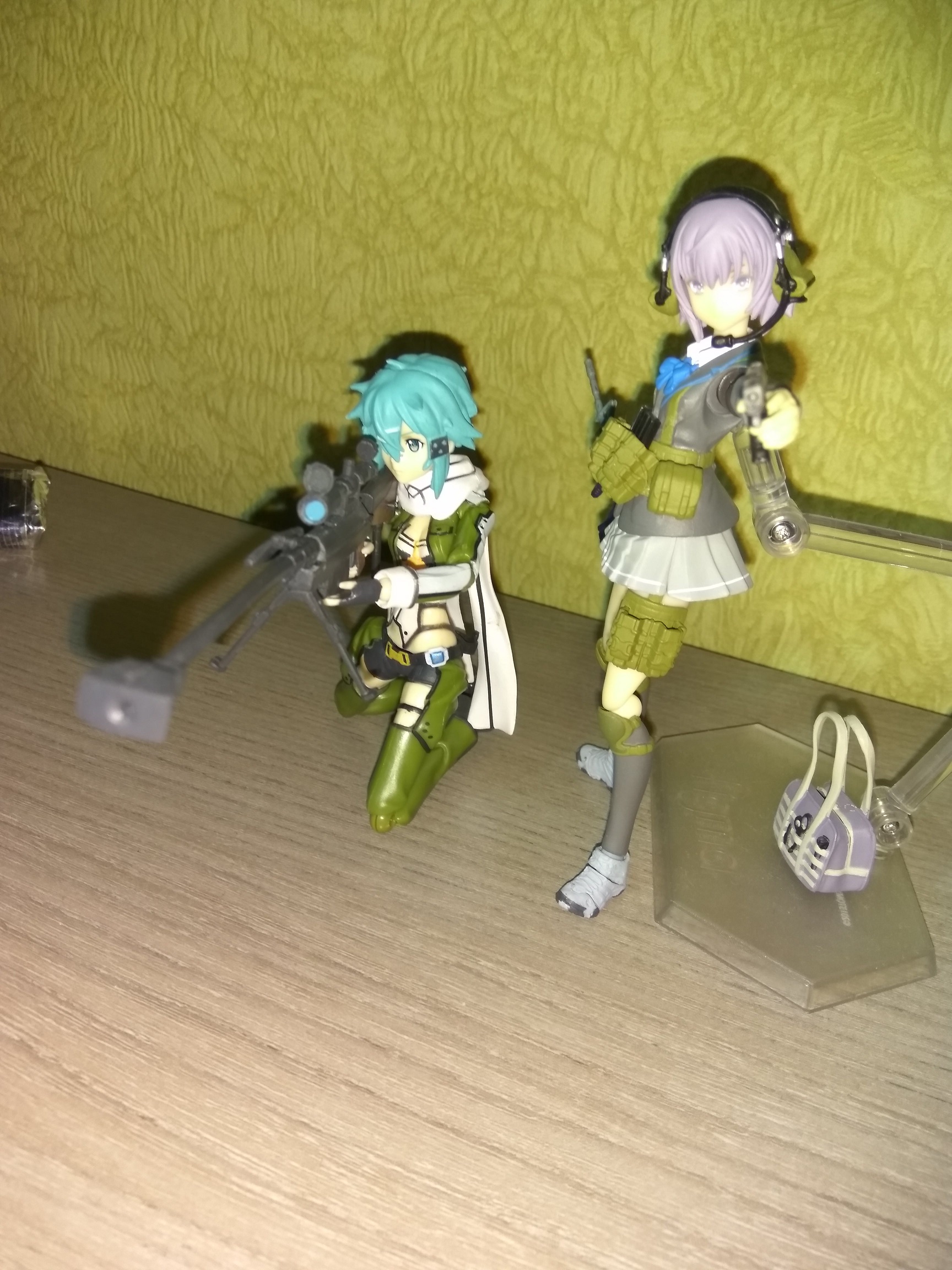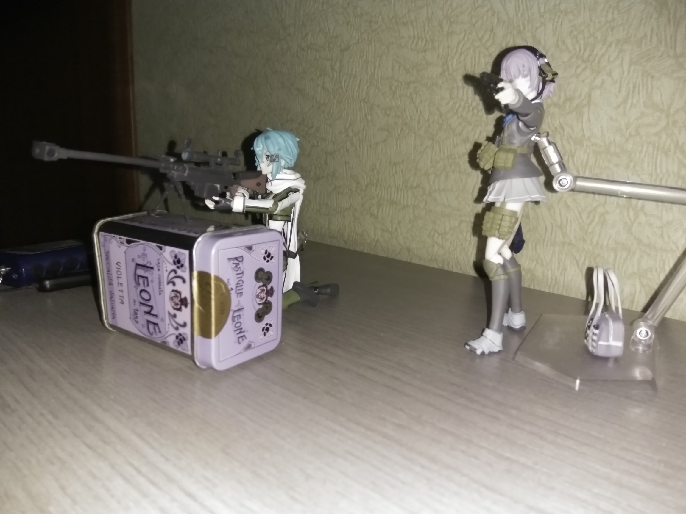 Короче моя китайская фигма пришла. Что тут скажешь, дьявол в мелочах. На удивление качество литья и покраски не такое ужасное, как на фотках в интернете, лица так вообще без изъяна. Но суставы говно, а это по-моему главное для фигмы. Не такие тугие как у настоящих, соответственно со сложными позами будут проблемы. Некоторые вообще разваливаются. Но артикуляция вся как у настоящей, торс, шея, даже ебучий шарфик. Подставка тоже немного болтается и не может удержать на весу в любом положении. У винтовки два приклада, один отваливается. Зато ремень как у настоящей. Пистолет вообще на удивление хорошо отлит. Пару фоток рядом с настоящей для сравнения, если там что-то видно.