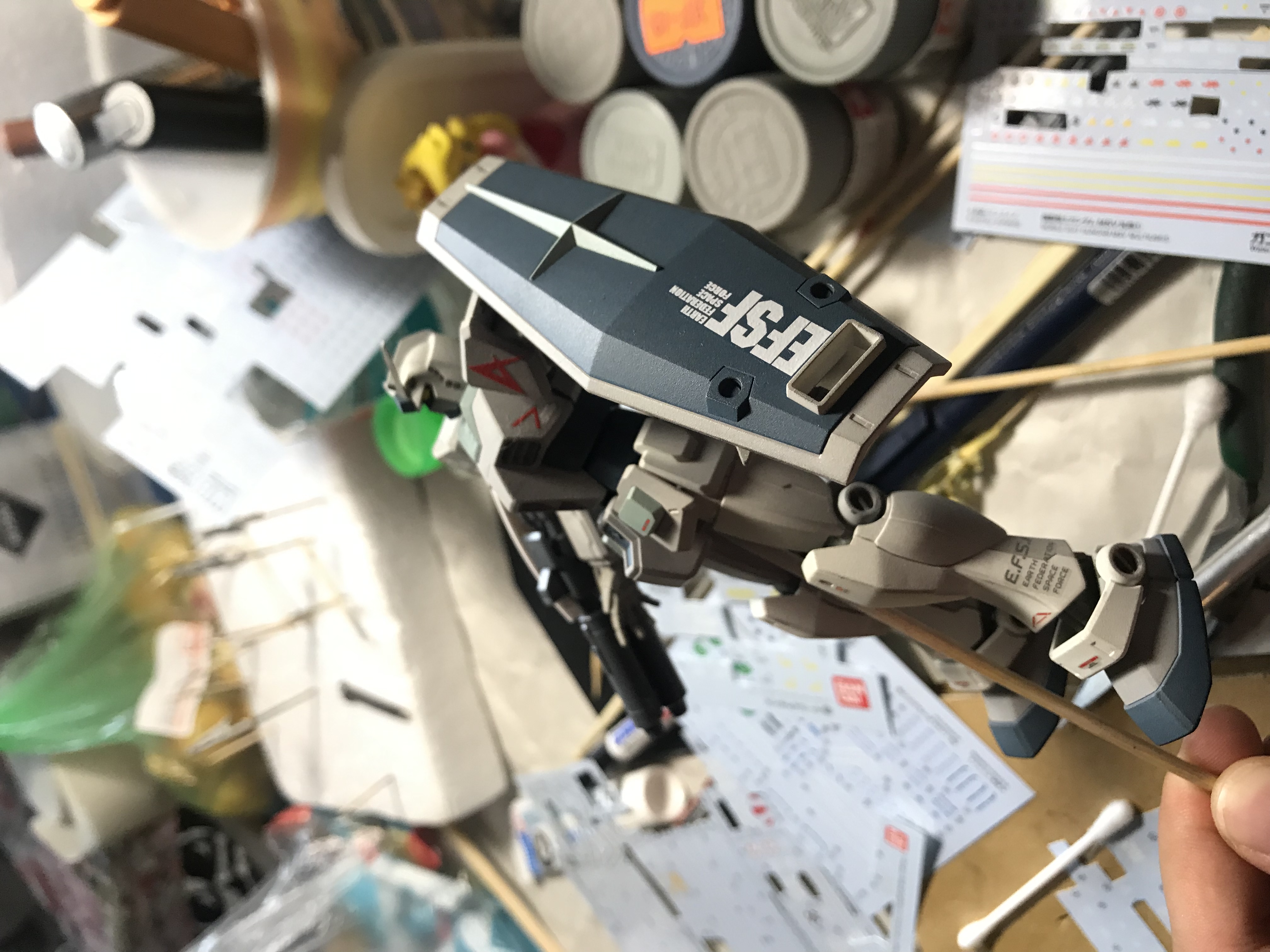 Дособирал наконец-то. Данный гандам оказался посложнее предыдущего RX-78-2, некоторые мелкие моменты не особо понравились: кое где неудачный подвод питателей, труднодоступные для удаления стыки прессформ ну и по мелочам. Так как отпуск у меня закончился, боюсь доделка затянется на несколько недель. Хочу купить полировочную пасту от тамии и попробовать полирнуть кое-какие места. А потом проливка и декали с лаком... Но всё же выглядит FA-78 пиздато даже без декалей и проливок. Один из самых офигенных гандамов.