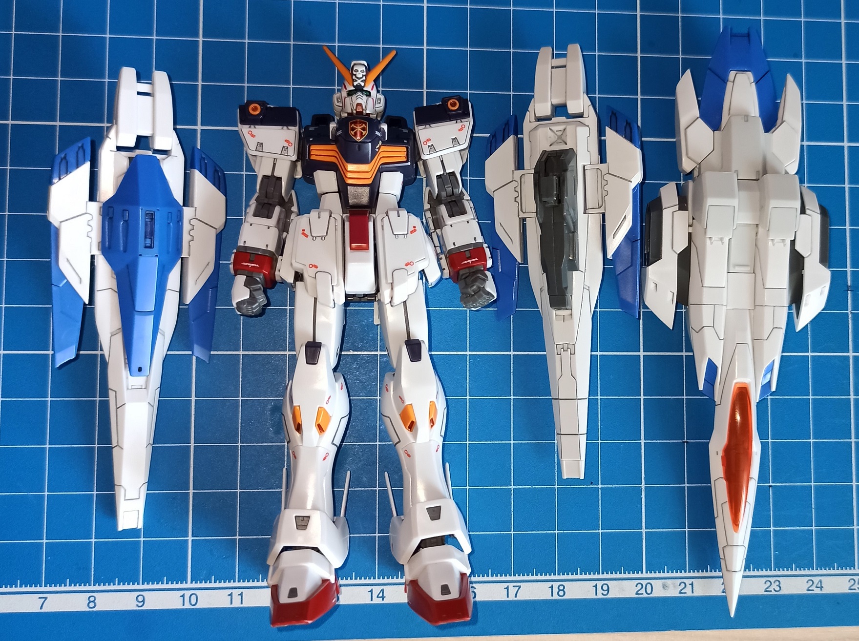 >>56610 Для декалей на будущее могу посоветовать Tamiya Mark Fit Strong, либо Mr. Setter и Mr. Softener. Первое проще и дешевле. Жижу наносишь на поверхность, сверху декаль, выравниваешь, немного ждешь и выдавливаешь лишнее. Сверху ее же на декаль наносишь и пусть сохнет. Так лучше прилипают и немного меньше блестят. Хорошая модель, но будто что-то не то с грудной частью в этом исполнении. Вообще Зета несколько проклятый дизайн, у каждой вариации свои нюансы в реализации. У Дабл Зеты Ver. Ka годная есть.