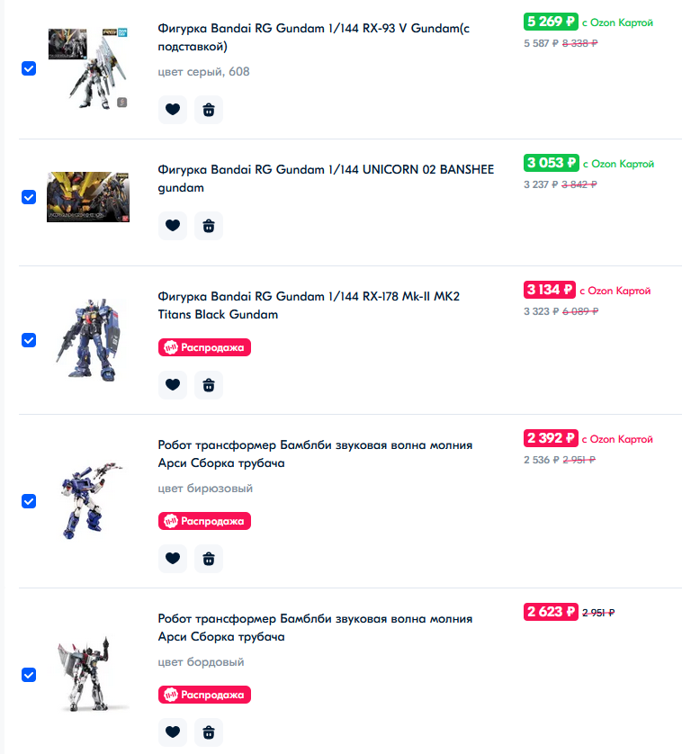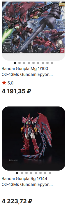 >>56272 Там то ли репринт случился дикий, то ли что. Высокие гуси за 3.3 к, единорог банши за 4 к, год гандам за 4 к, Форс импульс за 4 к, епиона можно за 4.8 взять. Пиздос, все что хотел взять все по каким-то скидкам сумасшедшим. А в ноябре небось и не будет нихуя скидок. А вот хай ню я вовремя взял. Ниже 7 к не вижу цен, а я брал за 5