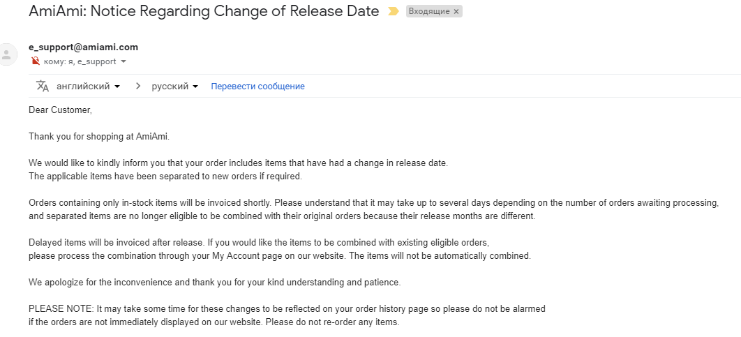 Так что жаловаться на AmiAmi явно не стоит, и как бы там ни работала их система по банированию долбоебов - к нормальным людям они относятся более чем достойно.