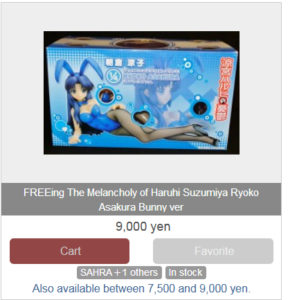 >>42266 > В среднем Хотя, нет. Фигуркоделы давно охуели, и эти "средние" 12000 йен превратились в 14-15к. Я чаще вижу ебанутые цены в 16-18к, чем 10-12к.