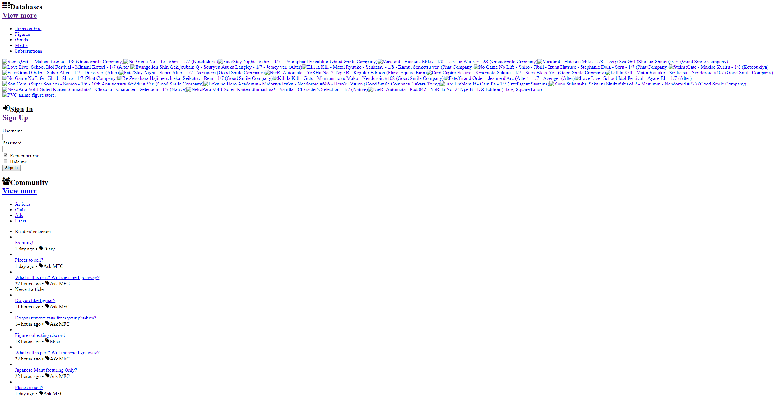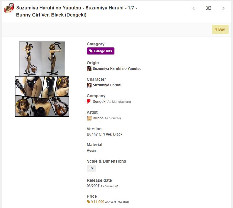>>39968 Идёшь, кароч, на myfigurecollection и там вбиваешь в поиск что хочешь. И видишь все возможные фигурки. Даже гаражки которых никто живьём никто никогда не видел.