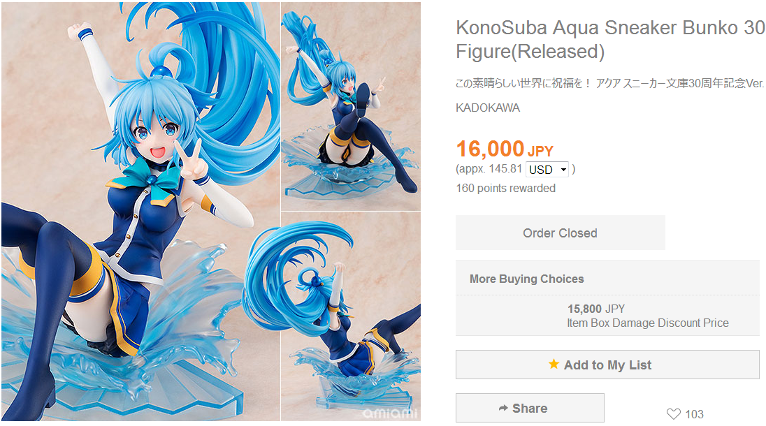 Наконец-то хорошая Мегумин: в костюме, с посохом и отличным лицом! Цена правда 17к йен не особо радует и фирма неизвестная (Sol International). Если кому надо, сегодня появились преордеры видимо, во всех магазинах, я проверял HobbySearch и BigInJapan.