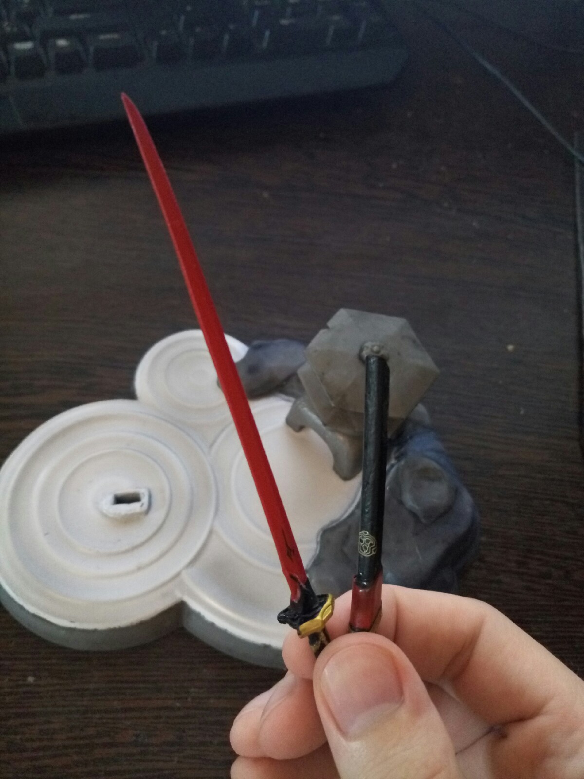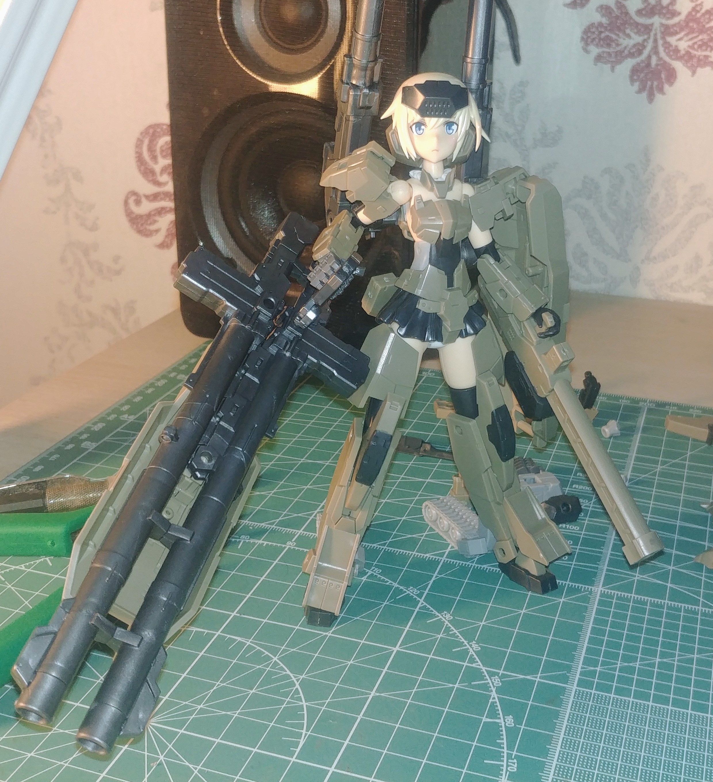 Пиздец, я чуть не умер. Все пальцы в мясо, пару раз чуть не выколол себе глаз ножом, пролил на себя Тамию и всё равно эта хуйня ещё не готова. Если коротко, то, я думал будет проще... Почти все детали образуют огромные зазоры между собой. Пришлось подпиливать штыри, чтоб дальше входили. Все ноги, например, я нахуй проклеил, а то при любом движении детали расходились. Руки в плечах совершенно не держатся и я без понятия, как это исправить. Коробка/подставка сделана из говна и палок. Но, внезапно, я доволен покупкой. В следующий раз сделаю всё аккуратнее и сразу буду знать, где и как фиксить. Осталось только пару моментов наладить. Надо как-то избавиться от следов литника (особенно на коробке) и сделать наклейки подолговечнее. Возможно и то и другое можно каким-нибудь лаком покрыть. Может знаете какой-нибудь годный типо спрей? А то разводы от кисти мне не нужны.