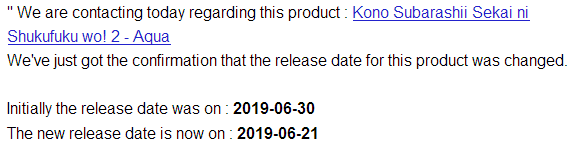 >>39832 Я писал просто что-то типа: >Good day. >I want to cancel my preoder #XXXXX due to change in release date. >Best regards, >Ivan Sychev По идее про причины можно вообще ничего не писать, их это не волнует все равно. По поводу кривизны языка тоже пофиг, я привык с китайцами на али и всякими ебеями любую дичь пороть без переводчика.
