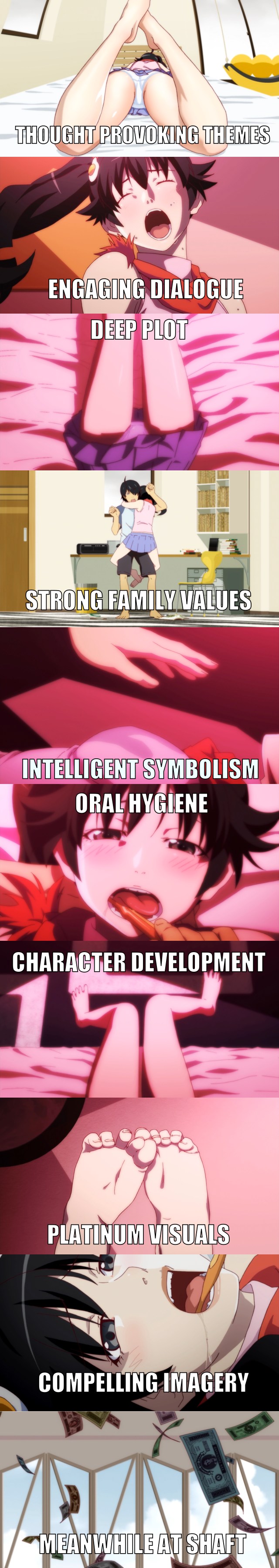 >>42189 Титосов интересней смотреть, потому что там имбоскилы равномерней распределены между персонажами и второстепенные персонажи иногда могут в соло затащить или наоборот умереть, поэтому за них можно переживать. В Щит Хиро/САО гг и его гарем бессмертные. Все файты решаются тем, что гг попереживал-покричал, потом на 1 хп выпукнул пару новых суперимбаскилов, которые смели всё зло с экрана, прибежали его шавки полобызали ему очко похвалами и всё - хэпи энд и начало новой арки.