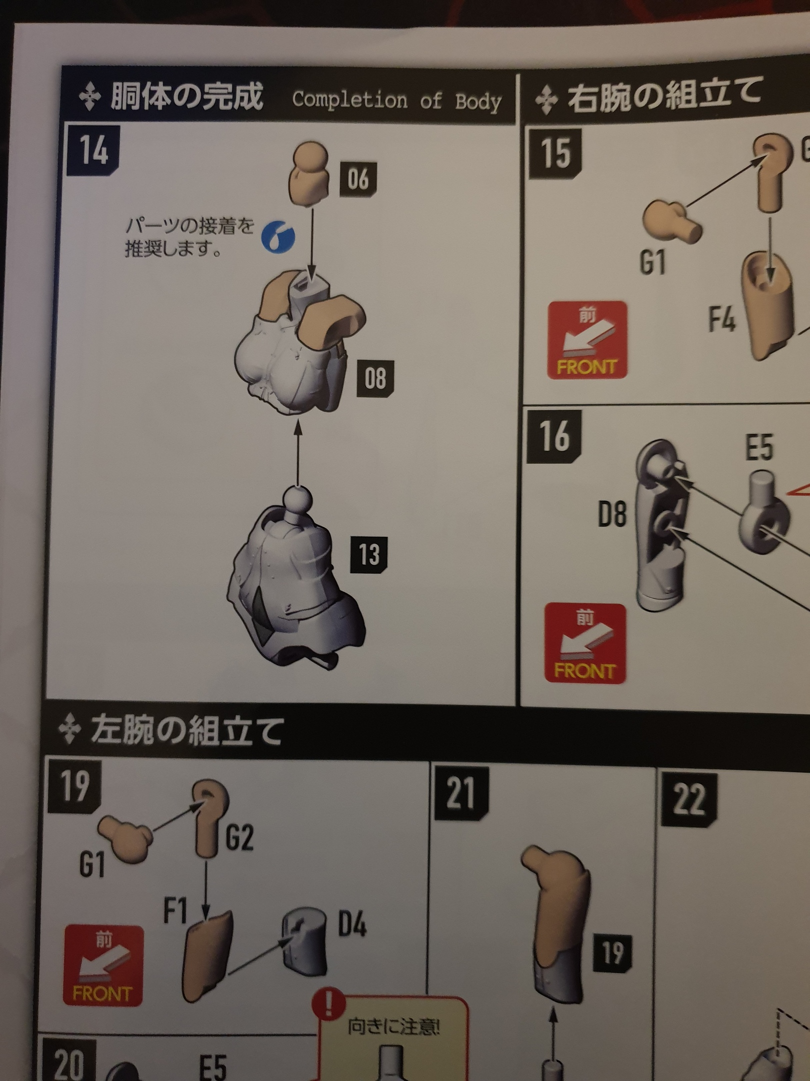 Спустя почти месяц до меня всё таки дошла сборная девочка и поняха. Тут в инструкции есть всего один момент, где рекомендуют склеить детали (14 пункт, синий круг между 06 и 08). Я пока до туда не дошёл, так что не знаю, будет ли она держаться сама по себе, но заранее спросить стоит. Если уж действительно нужно будет клеить, то что брать? Я думаю завтра заехать в магазин для хобби за кусачками и лезвием. Там есть какой-то клей UwU UHU для всех видов пластика за 20 рублей или лучше выебнуться и взять жидкий цемент от Tamiya? Если ещё и буду собирать, то только когда выпустят вторую девочку из этой серии.