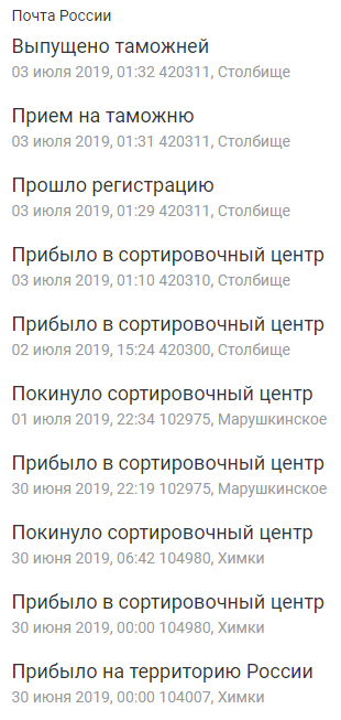 Посылка в Москву дошла до Москвы и уехала в Казань проходить таможню. Заебись.