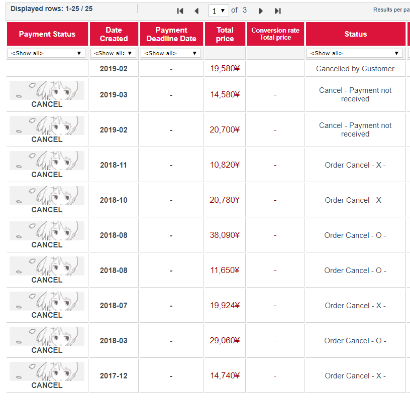 Думаю, это тесно взаимосвязано с учетом количества заказов через раз отменять никто не даст, и наверняка есть порог, после преодоления которого на X "недонесенных" до магазина йен клиент обязан приносить уже X^2 йен, чтобы не оказаться забаненным.