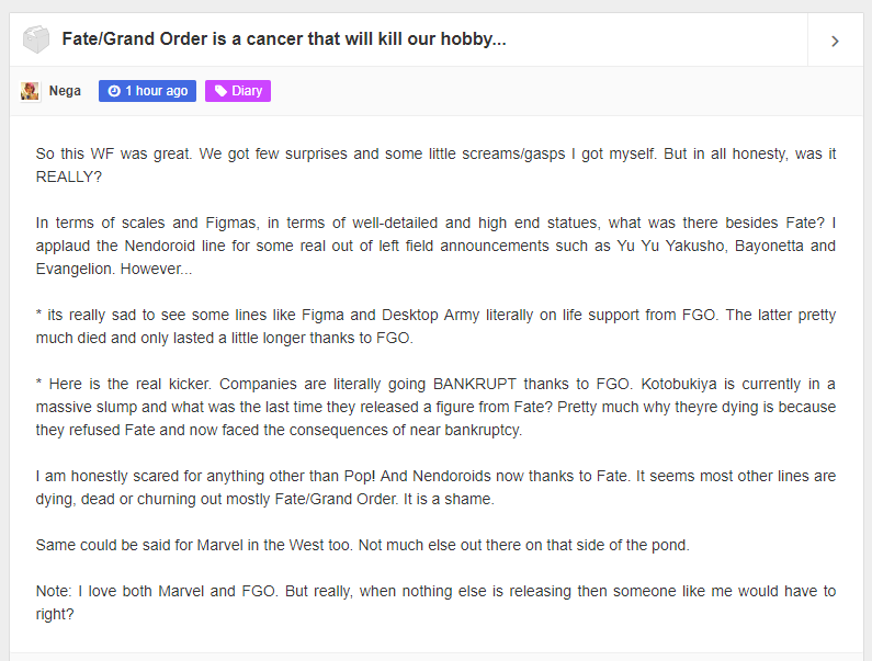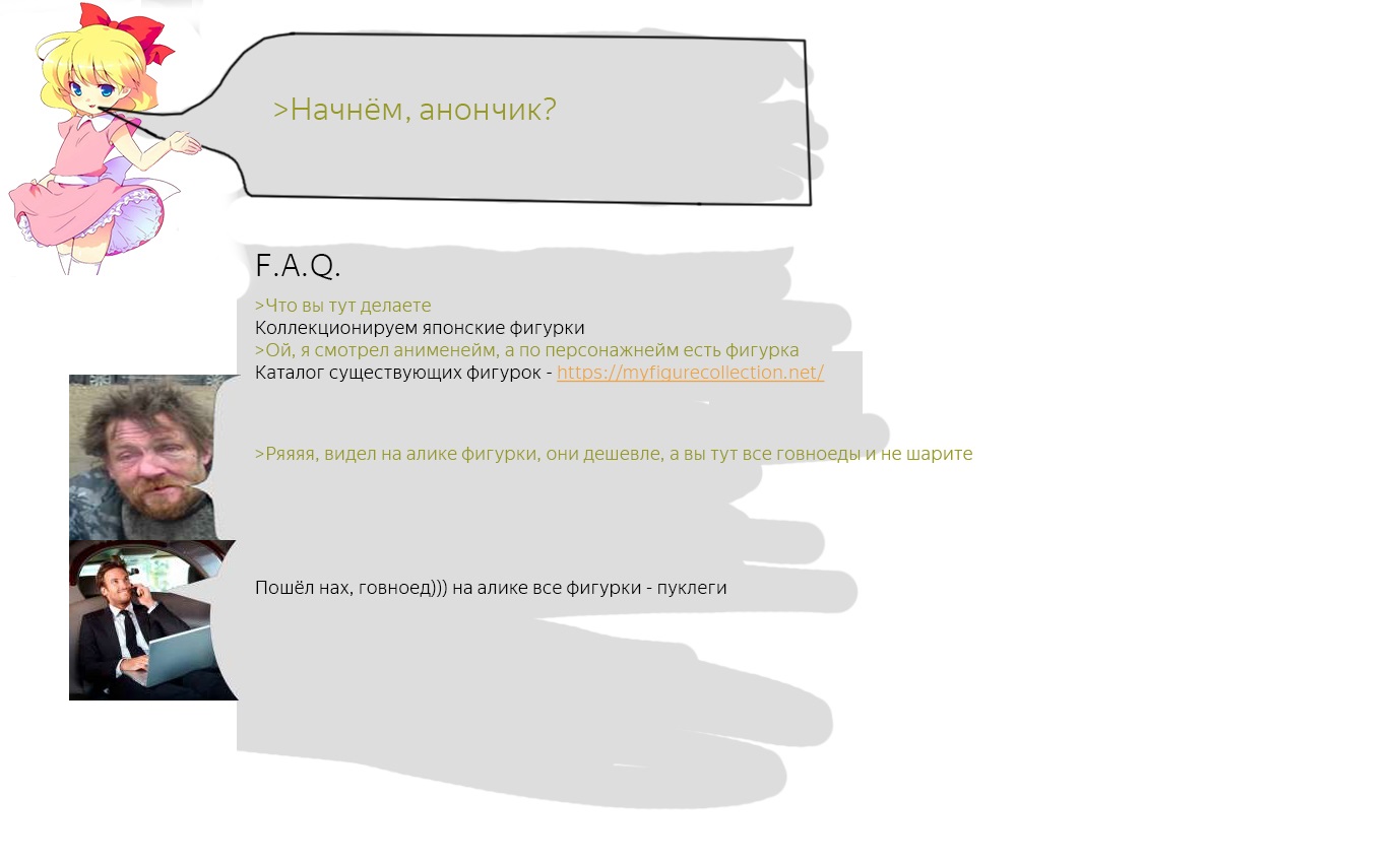 >>42863 Но он прав. Фигурок по аниме стало меньше, не считая повтора одних и тех же популярных персонажей. Из нового в основном одни высеры по игро-параше и никому ненужные оригинальные персонажи. В пизду такое вообще.
