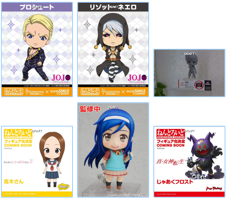 Tejina-senpai - прототип от Котобукии + анонс от Bell Fine Kyokou Suiri - анонс от Котобукии и Bell Fine Нагаторо - Bell Fine Парочка из Оверлорда - FuRyu (линейка фигурок F:Nex - не прайзы)