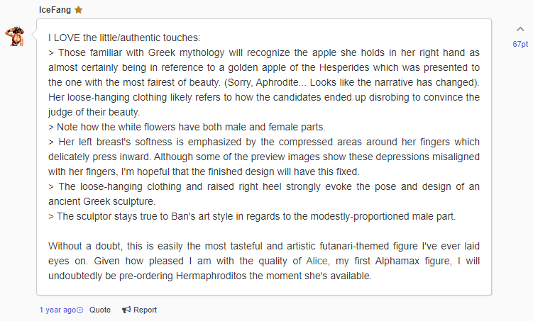 >>42852 Никогда не покупал порнофигурки, но по-моему эта вышла заебись. Много деталей, очочки на еблете, добротное тело и приятные цвета. А ещё огромных сисяндр нет. Охуенчик, куда класть деньги?