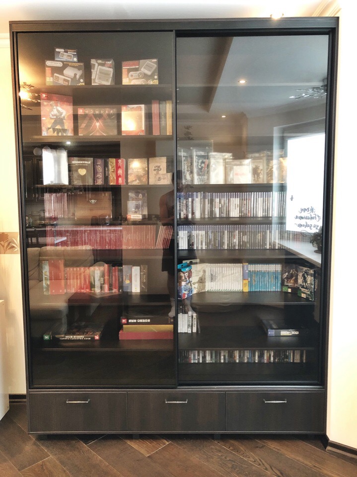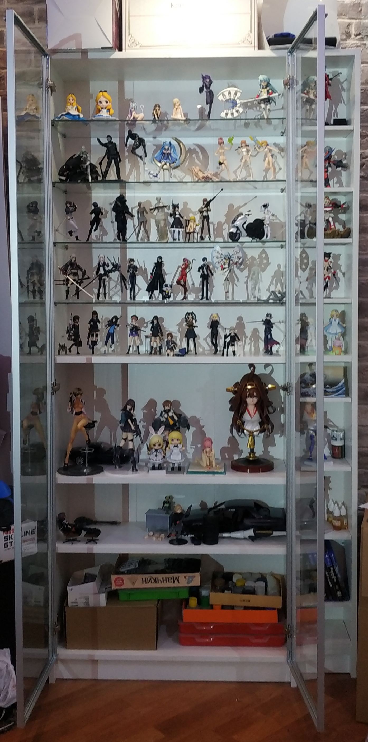 Вкачусь со своей небольшой коллекцией. >>44838 Пикрилейтед - билли из икеи. Докупаешь стеклянные дверцы морлибден, если нужно - то там же полки, но лучше стеклянные или нарезаешь в любой конторе по резке стекла. По стенкам идут отверстия под полки, через каждые 3 см, ну ты понял. Центральную полку убрать/сместить при этом нельзя.