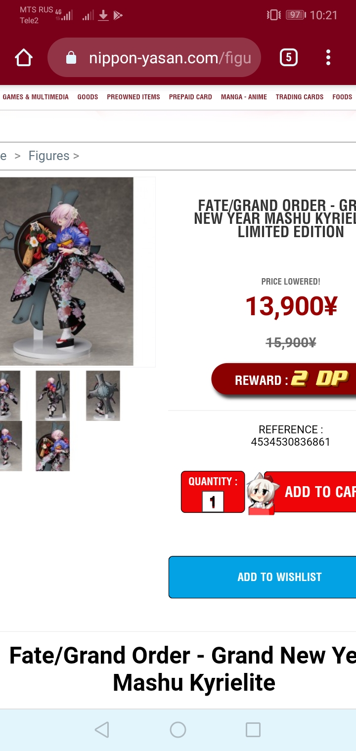 Написал в отечественный магазин где она якобы была, они сказали что ее нет на складе, но есть в 1 экземпляре у поставщика. Заломили цену в 50к+. Зарекся больше никогда и не думать покупать в российских анимешопах.