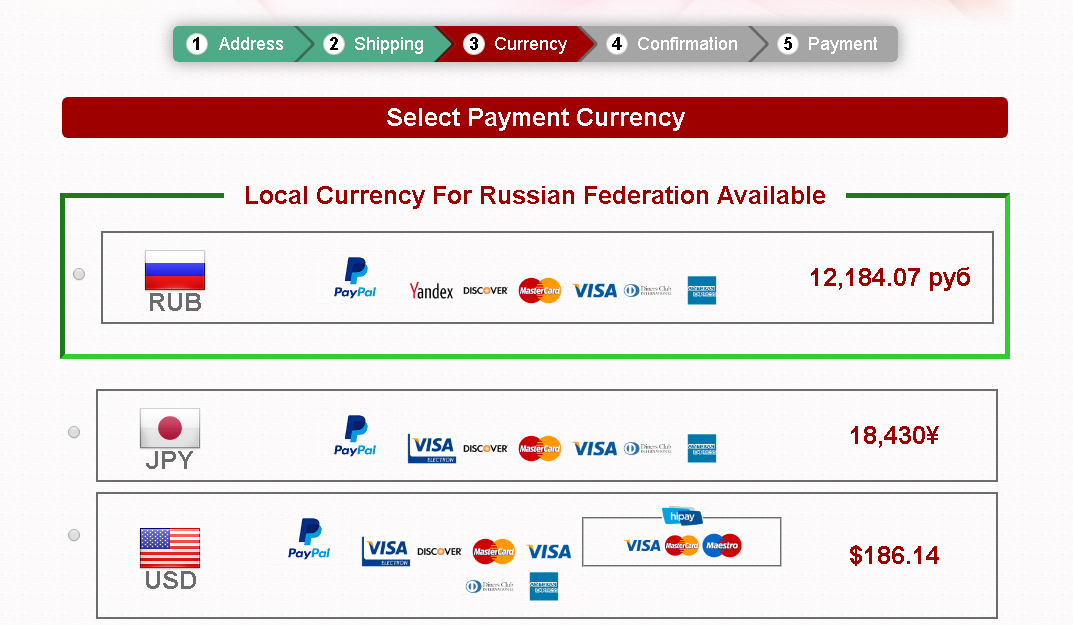 >>45462 Да, её. Тогда оплачивай в йенах, наверное. Я просто всегда оплачиваю в йенах, и уже банк переводит мою валюту в йены по своим курсам. Или ты палкой хочешь оплатить? Я не пользовался, но так, кажется, тоже можно настроить обмен валюты по курсу палки и магазина.