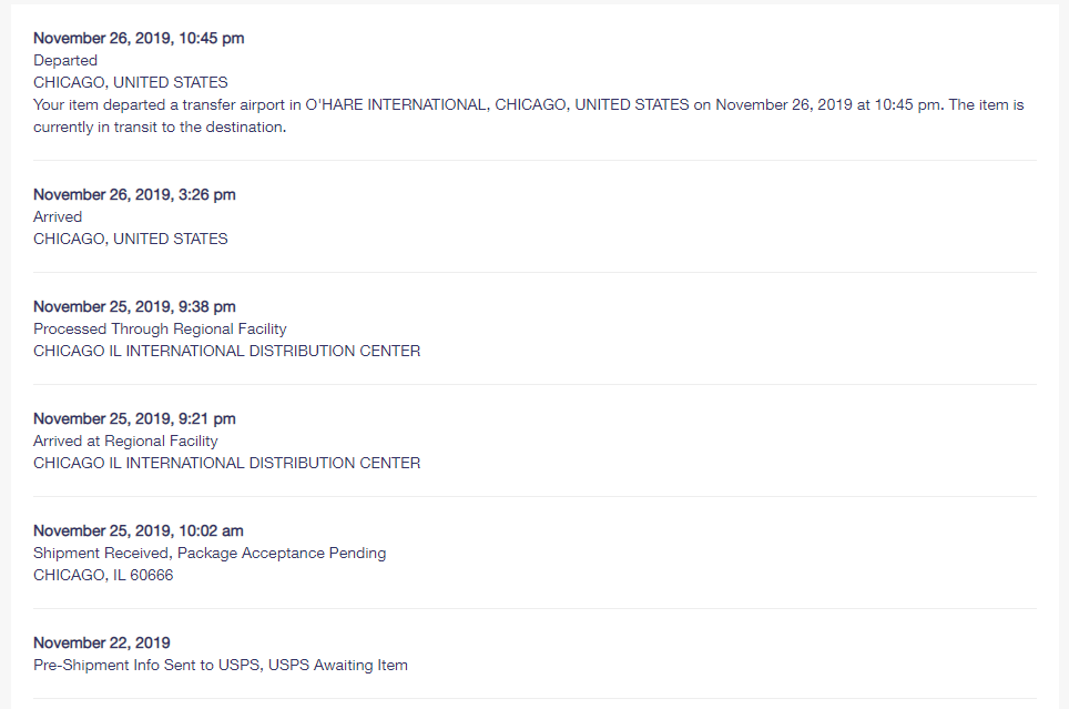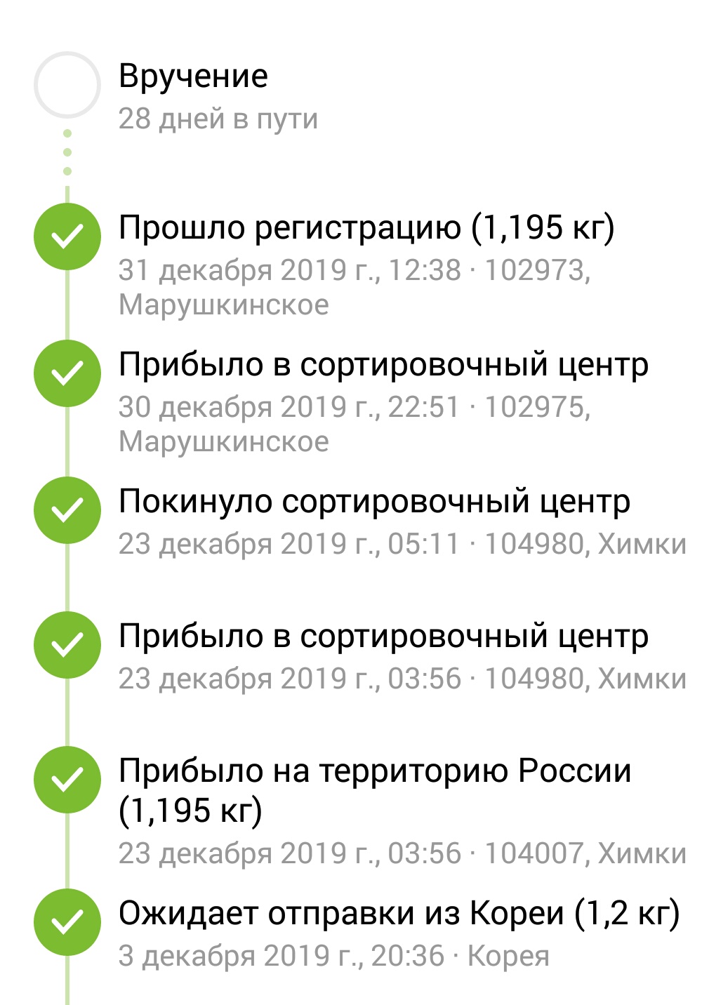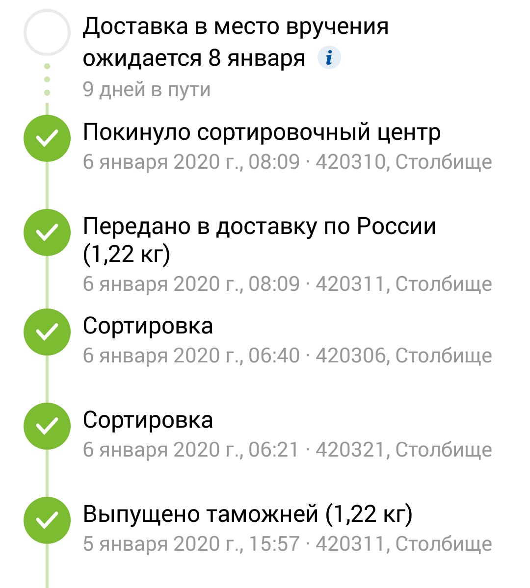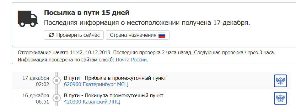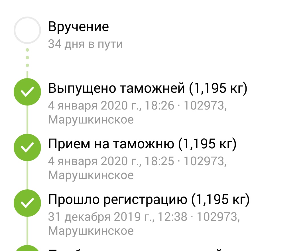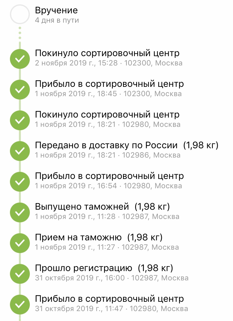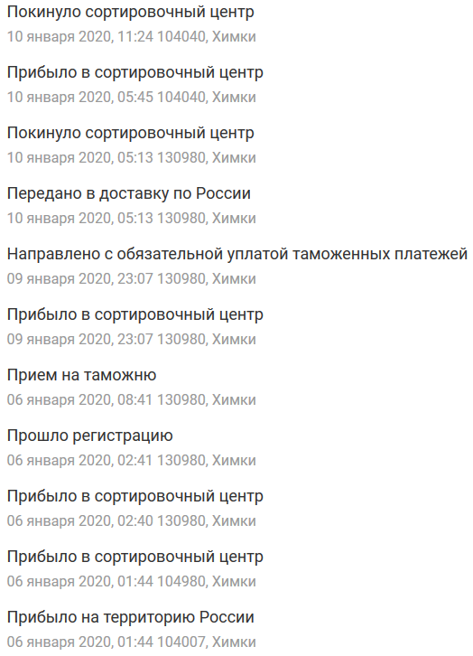 >>45488 Ну да, тут очень много ещё зависит от того, насколько ты сам далеко находишься от всех этих сортировочных центров. Не знаю, с моим САЛом пока всё нормально, обычно дней 15 занимает пересылка. Было только один раз, что заняло 25 дней, но это наша почта сильно тупила, и неделю везла посылку из сортировочного центра до отделения, которые в расстоянии 2км друг от друга.